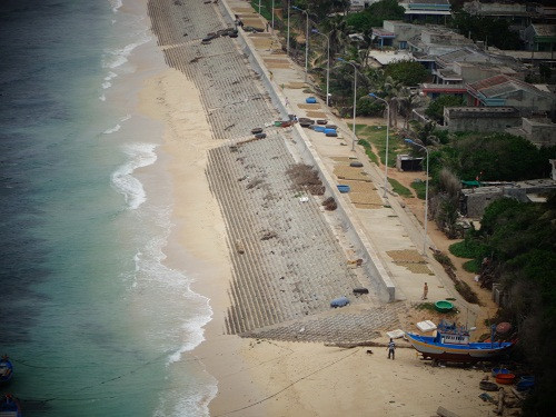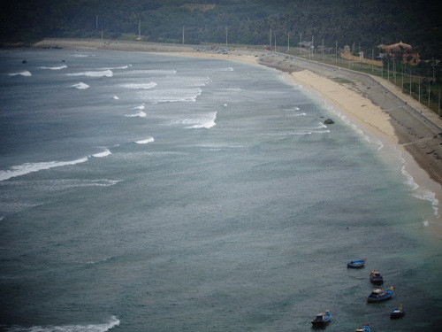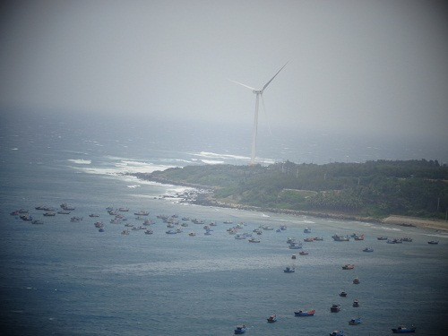 | Tổ bay làm nhiệm vụ gồm thiếu tá Ngô Hồng Sơn - phi đội trưởng, lái chính, thiếu tá Lưu Công Bằng-dẫn đường kiêm phi công, đại úy chuyên nghiệp Nguyễn Trọng Cương-cơ giới trên không, trên đường bay ra đảo Phú Quý từ sân bay Thành Sơn. Bờ biển Phan Rang mở rộng tầm mắt dưới cánh bay trực thăng. |