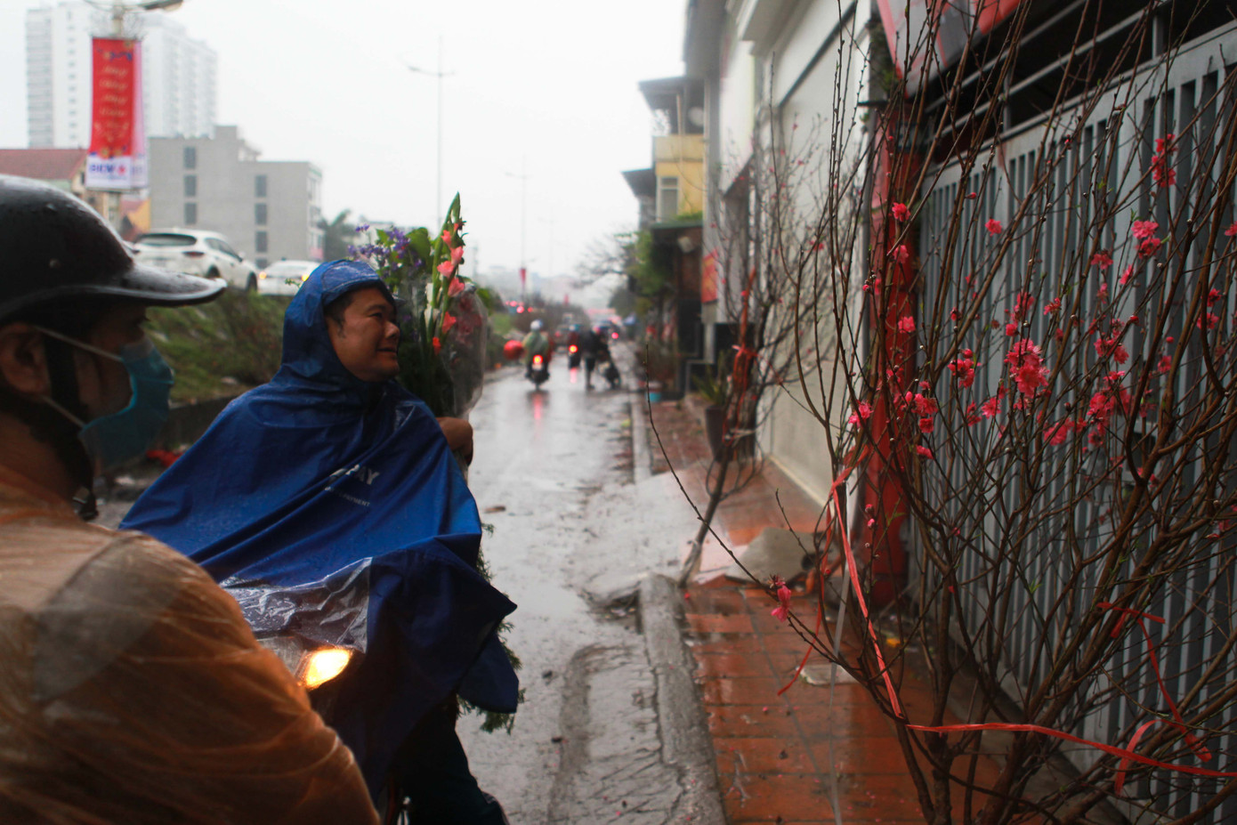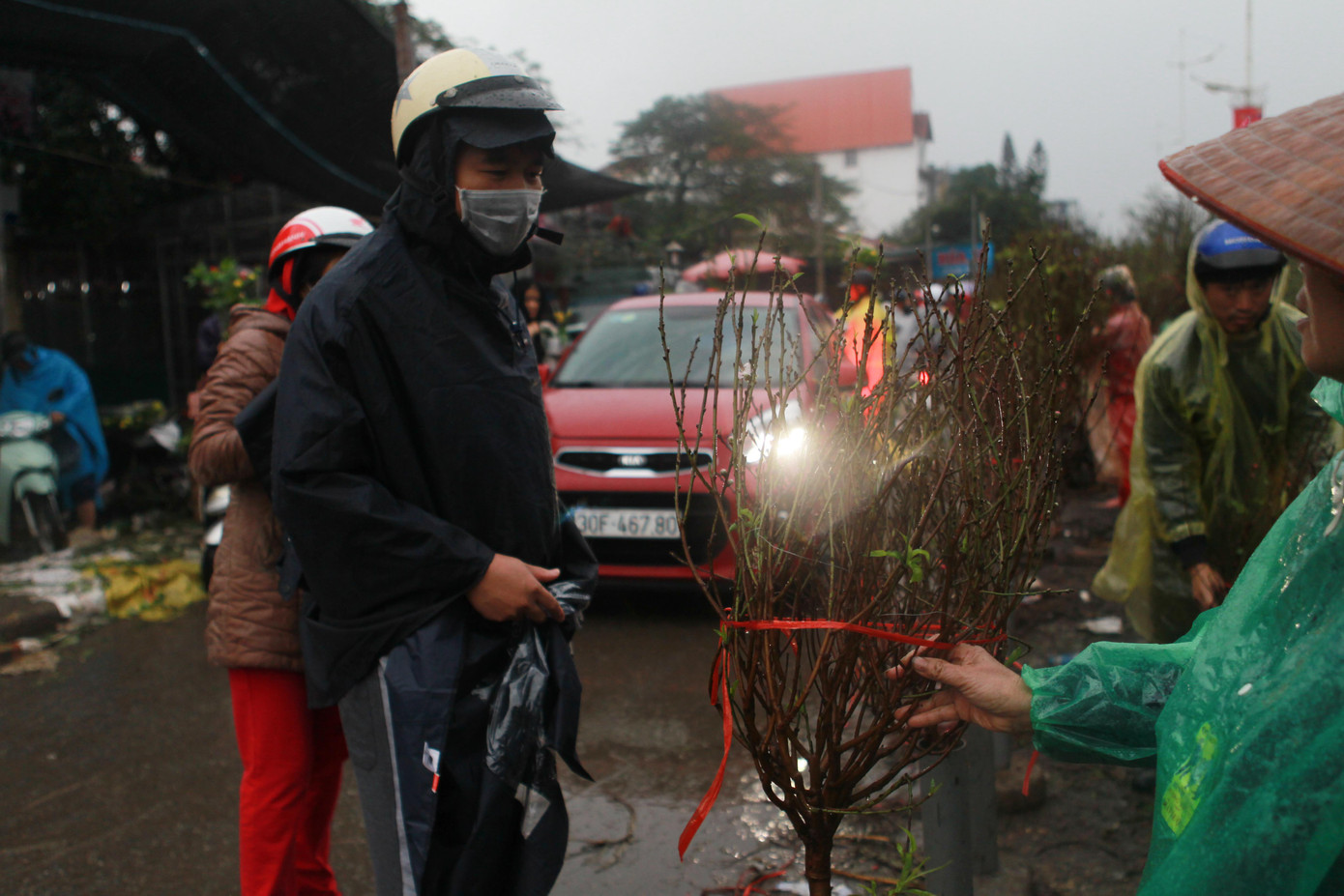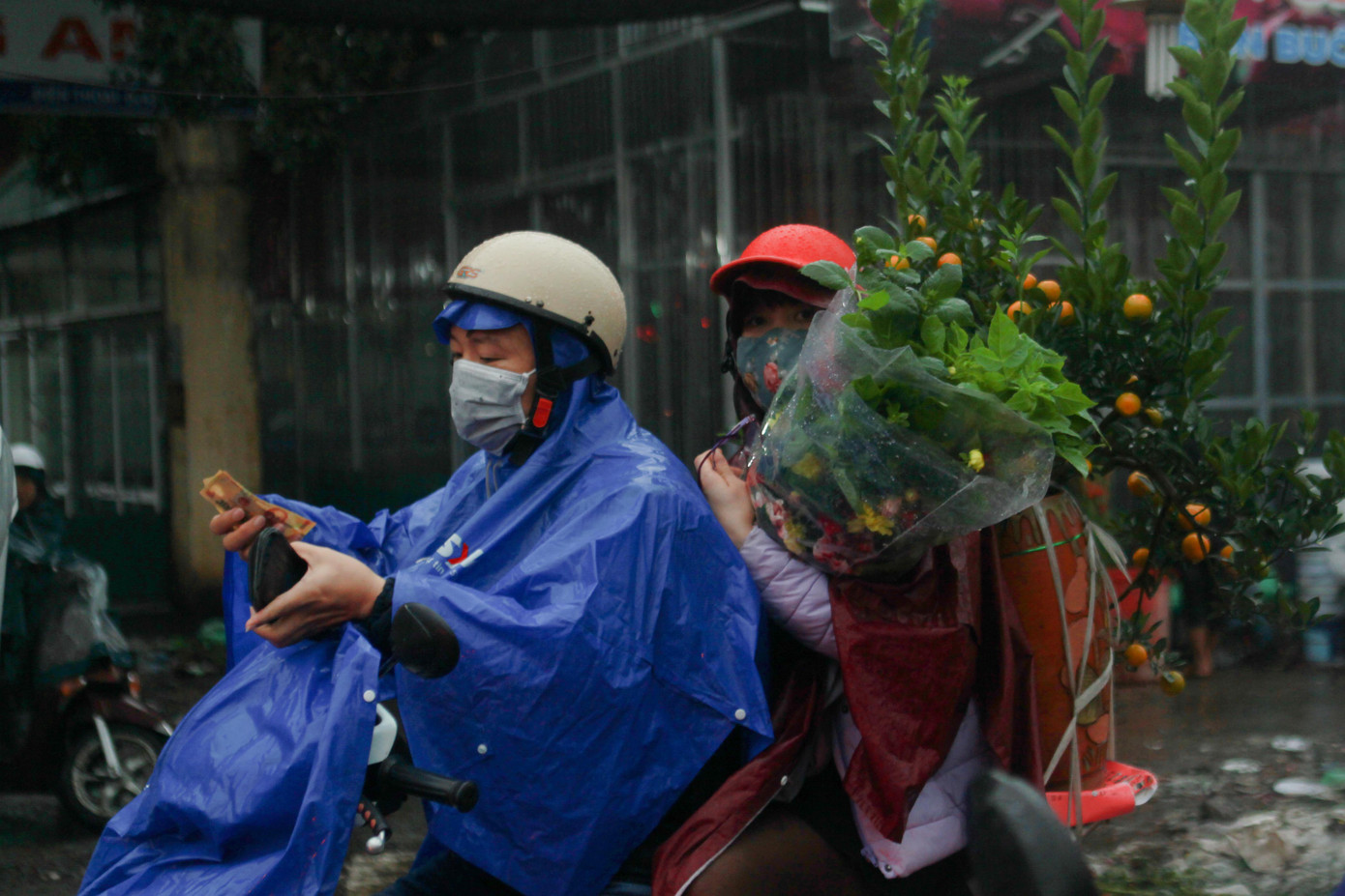 "Chiều 30 rồi, kiểu gì quất cũng phải bán rẻ nên dù trời mưa vẫn mình tranh thủ đi kiếm một cây chơi Tết", một người mua quất cho biết