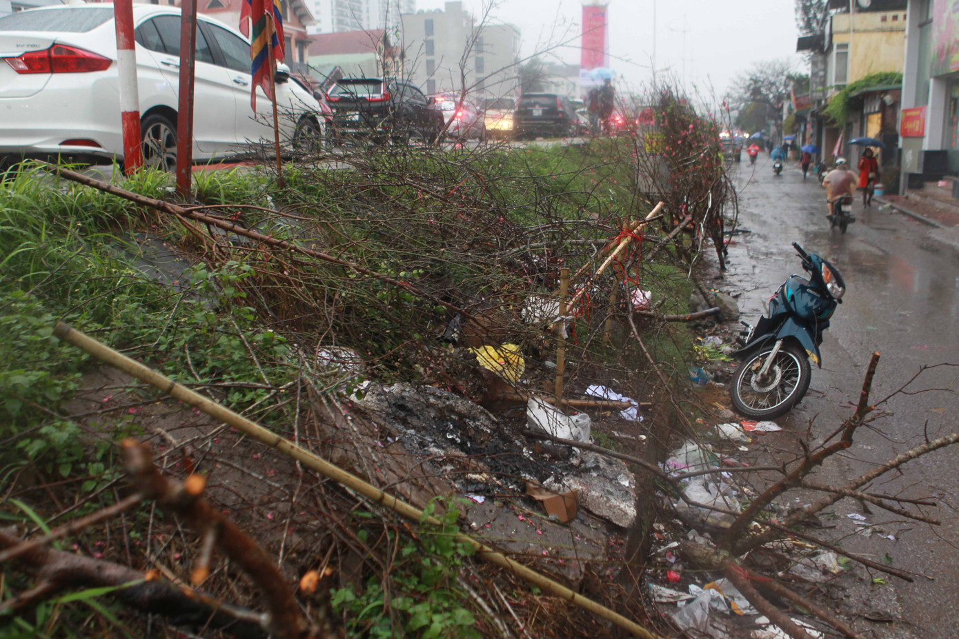 Nhiều cành đào bị vứt bỏ do xấu hỏng. Cực đoan hơn, một số tiểu thương còn vứt bỏ đào để tránh tình trạng bán phá giá
