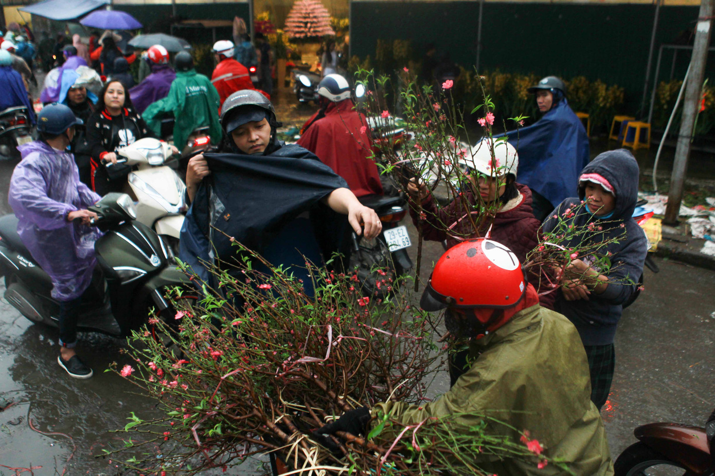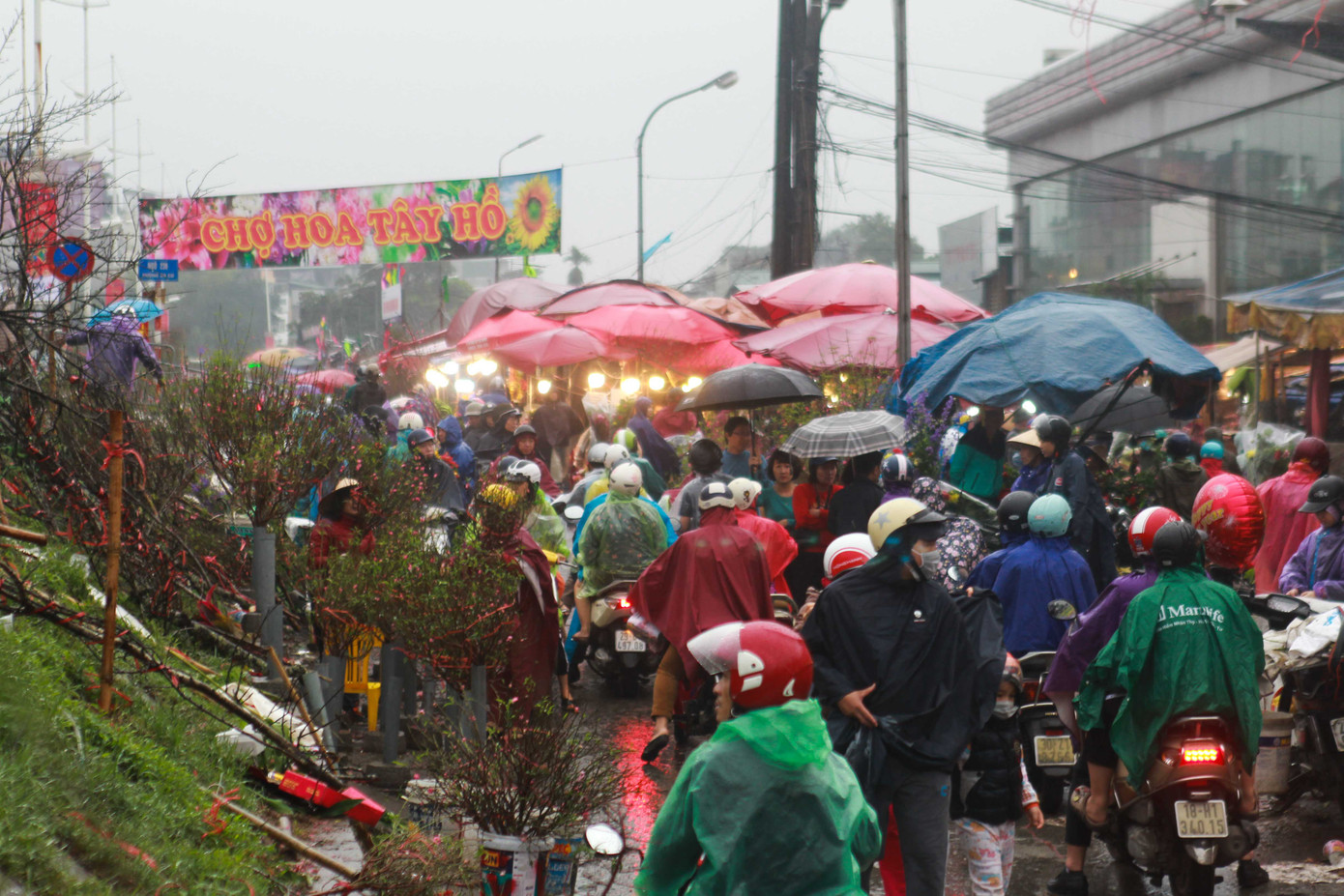 Chợ hoa Quảng Bá (Quận Tây Hồ) đông đúc vào chiều 30 Tết (24/1/2020) mặc cho trời mưa tầm tã