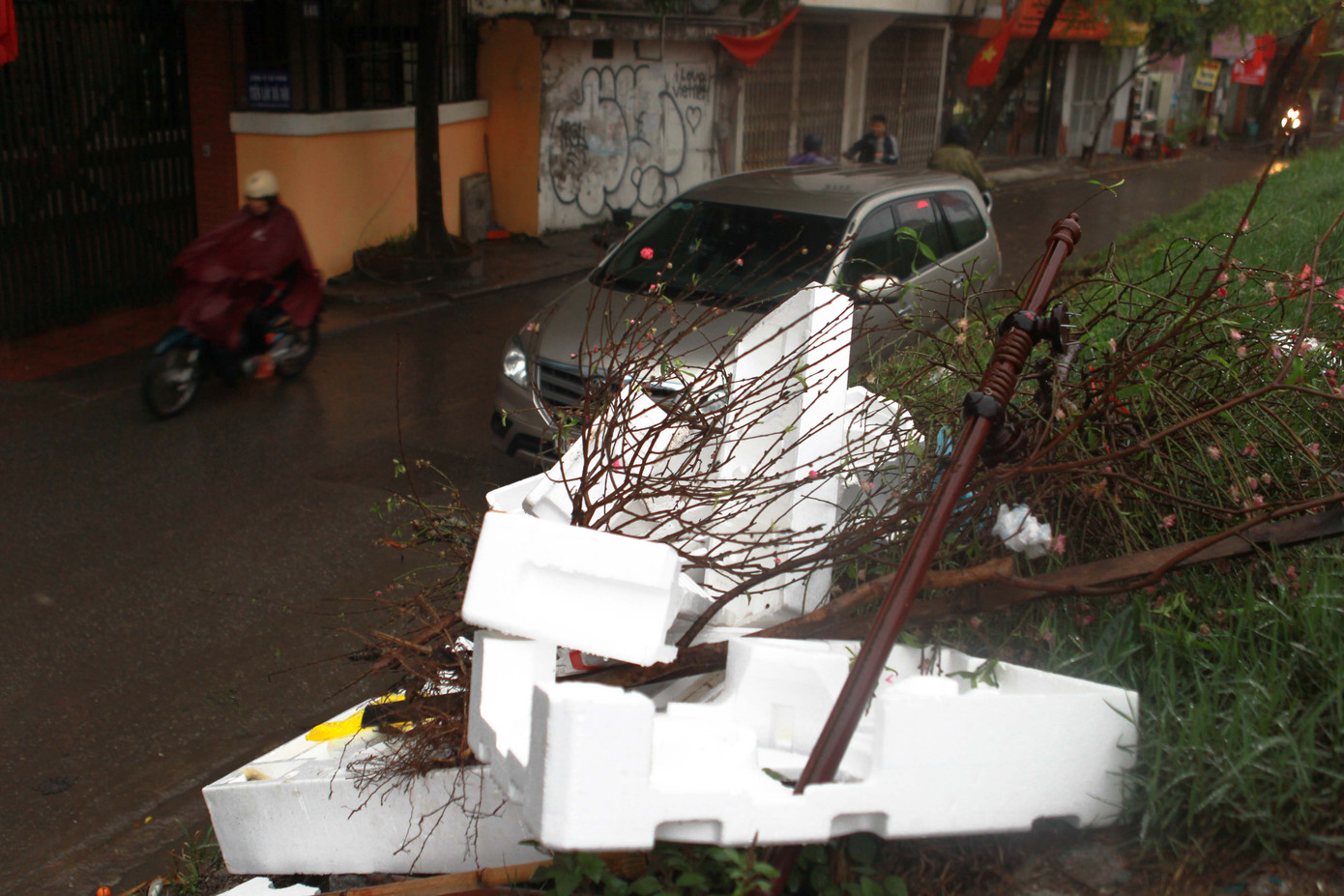 "Do cả ngày hôm nay trời mưa nên nhiều cành cũng bị hỏng, phải bán rẻ, hoặc không bán được", một tiểu thương chia sẻ