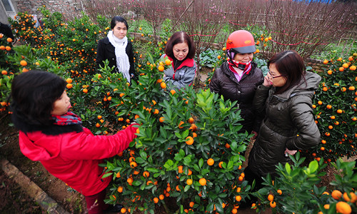 Còn đôi ba ngày nữa là Tết Nguyên đán song khắp nẻo đường Hà Nội, những chuyến xe chở các loại cây cảnh như đào, quất, mai... vẫn tấp nập đổ về. Trời rét đậm, song không khí mua bán tại các con phố Lạc Long Quân, Hoàng Hoa Thám, Nghi Tàm, chợ hoa Quảng Bá (Tây Hồ)… vẫn nhộn nhịp giữa những cành đào, cây quất được mùa.