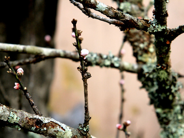 | Thân cây đào lâu năm xuất hiện rêu mốc. |