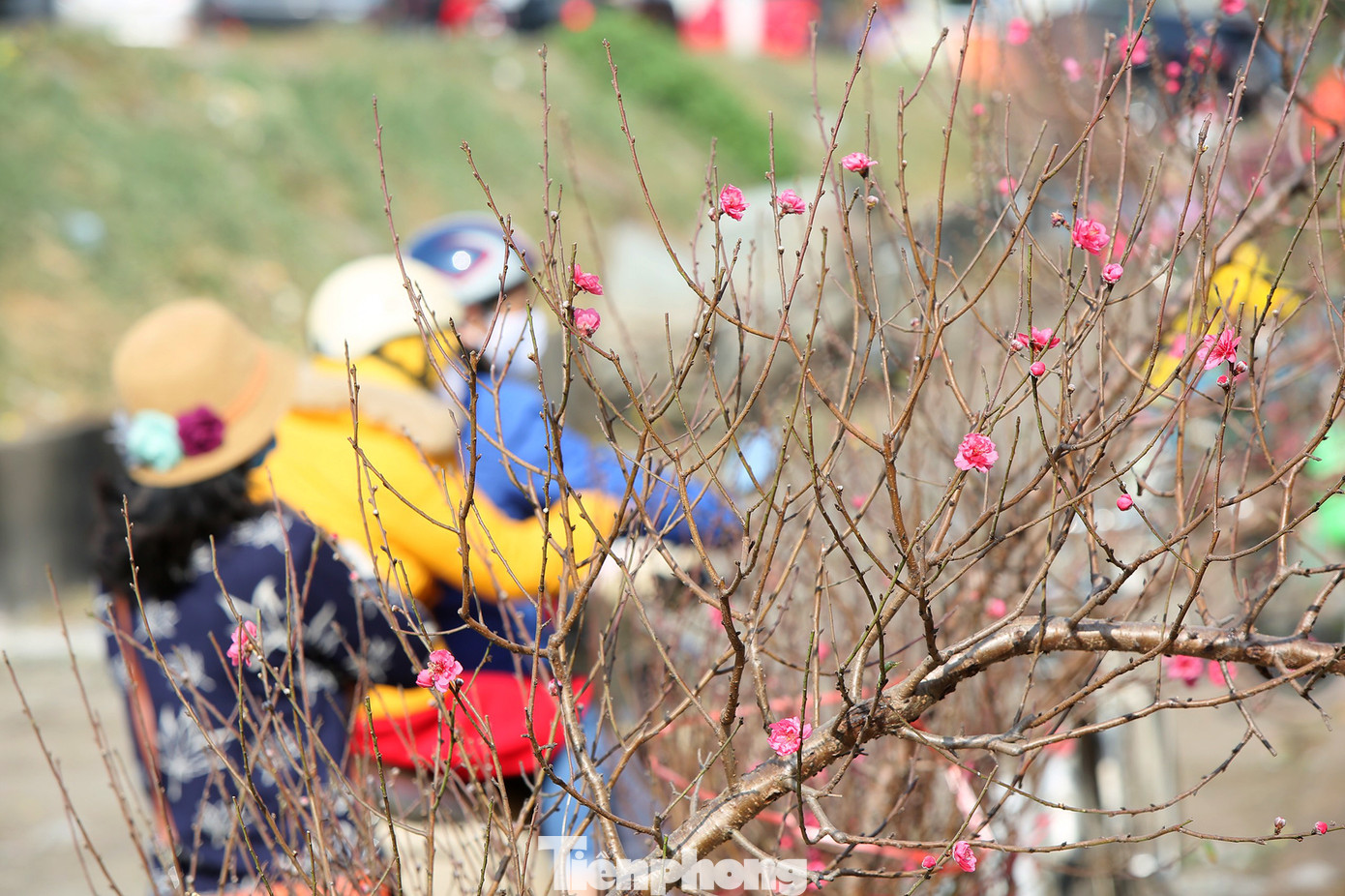 Trong tiết trời giá lạnh, đào Nhật Tân vẫn bung nở và theo chân các tiểu thương xuống chợ Quảng Bá.