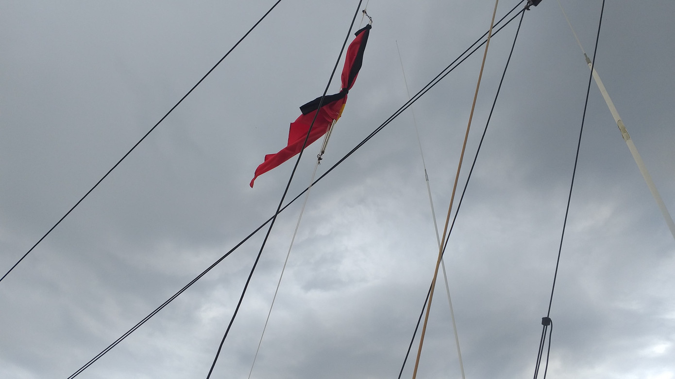 Tàu Hải quân 409 (đang ứng trực trên vùng biển Trường Sa) treo cờ rủ.