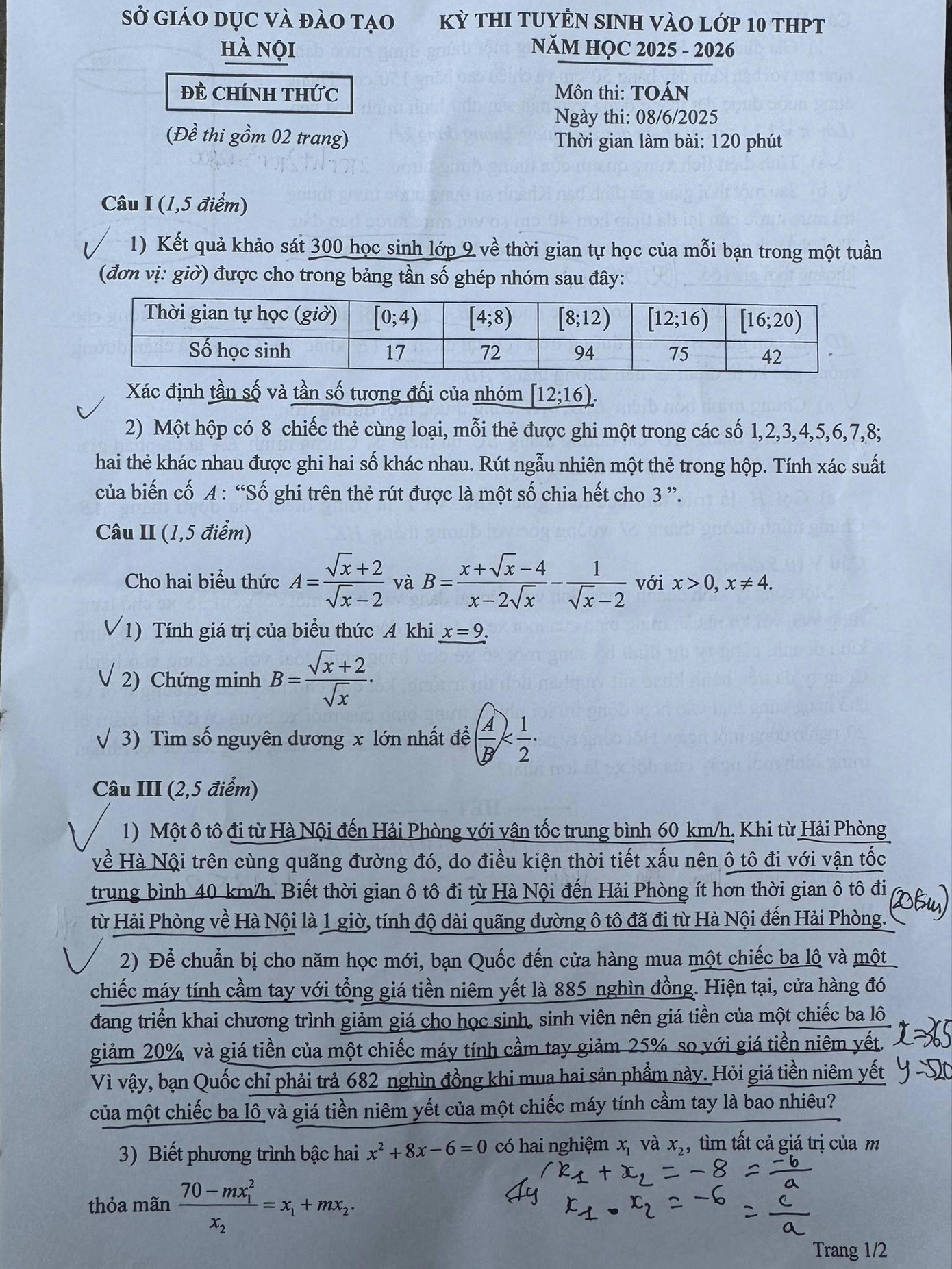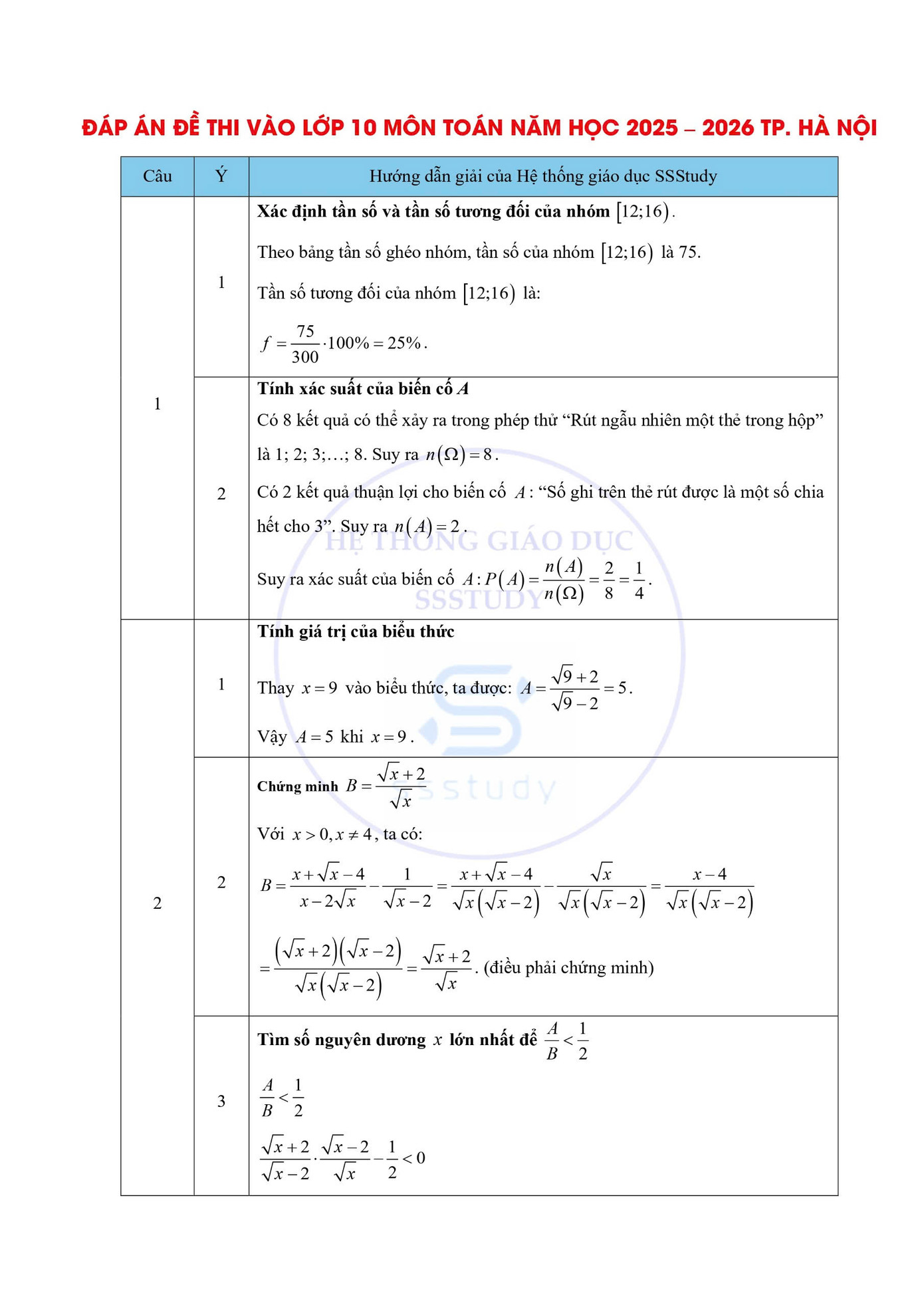 SVO - Sáng nay 8/6, môn thi cuối cùng của kì thi tuyển sinh vào lớp 10 của Sở GD & ĐT TP Hà Nội đã diễn ra với hệ không chuyên. Tham khảo ngay ĐÁP ÁN đề thi môn Toán kì thi tuyển sinh vào lớp 10 năm học 2025 - 2026 TP Hà Nội do Hệ thống giáo dục SSStudy thực hiện dưới đây.