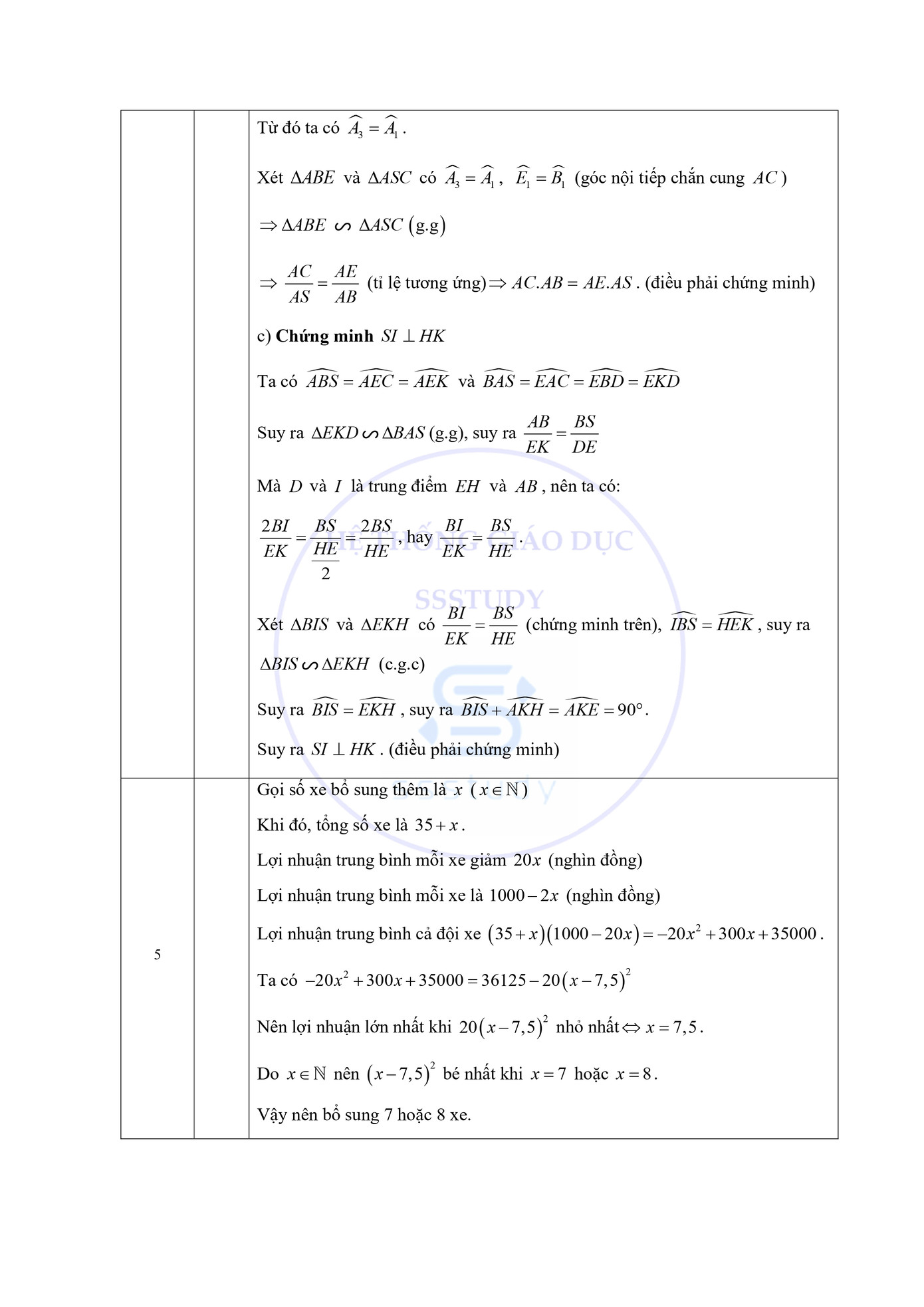 Dưới đây là đáp án tham khảo cho đề thi này được thực hiện bởi Hệ thống giáo dục SSStudy: