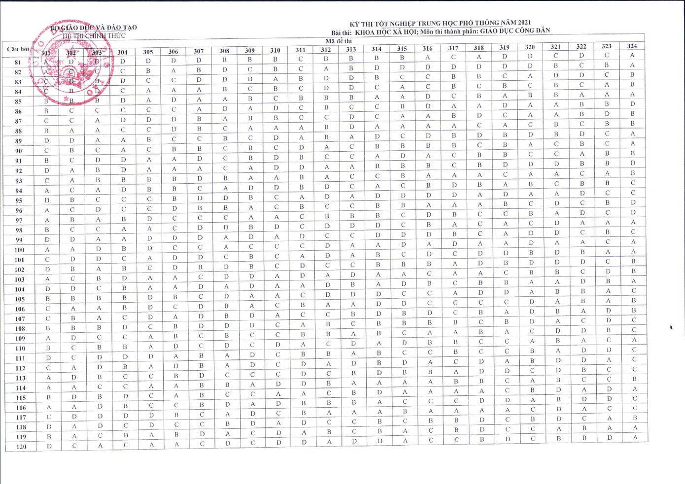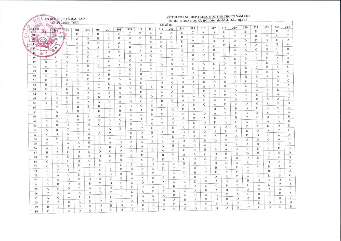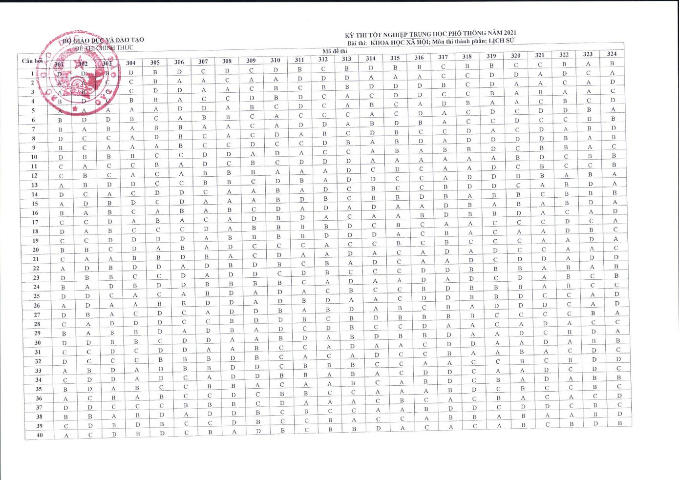 TPO - Bộ GD&ĐT vừa chính thức công bố đáp án các môn Lịch sử, Địa lý, Giáo dục công dân của kỳ thi tốt nghiệp THPT 2021 đợt 1