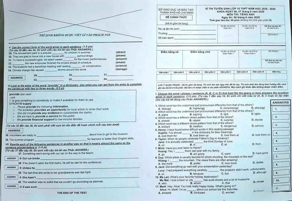 Đề môn Tiếng Anh thi vào lớp 10 TP Hồ Chí Minh¦ năm 2025 với thời gian làm bài 90 phút như sau: