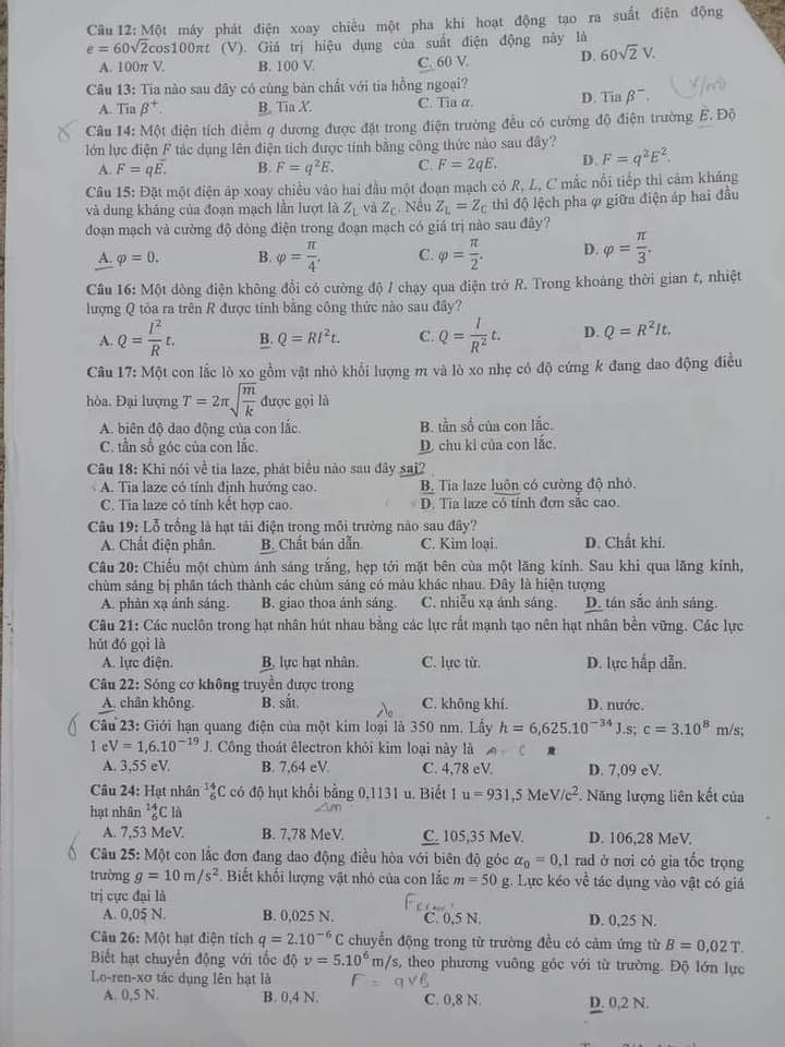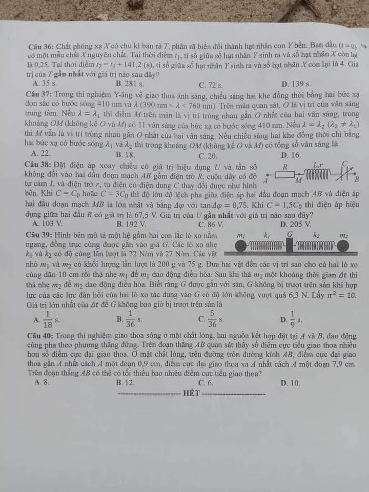 Gợi ý giải đề môn Vật lý: