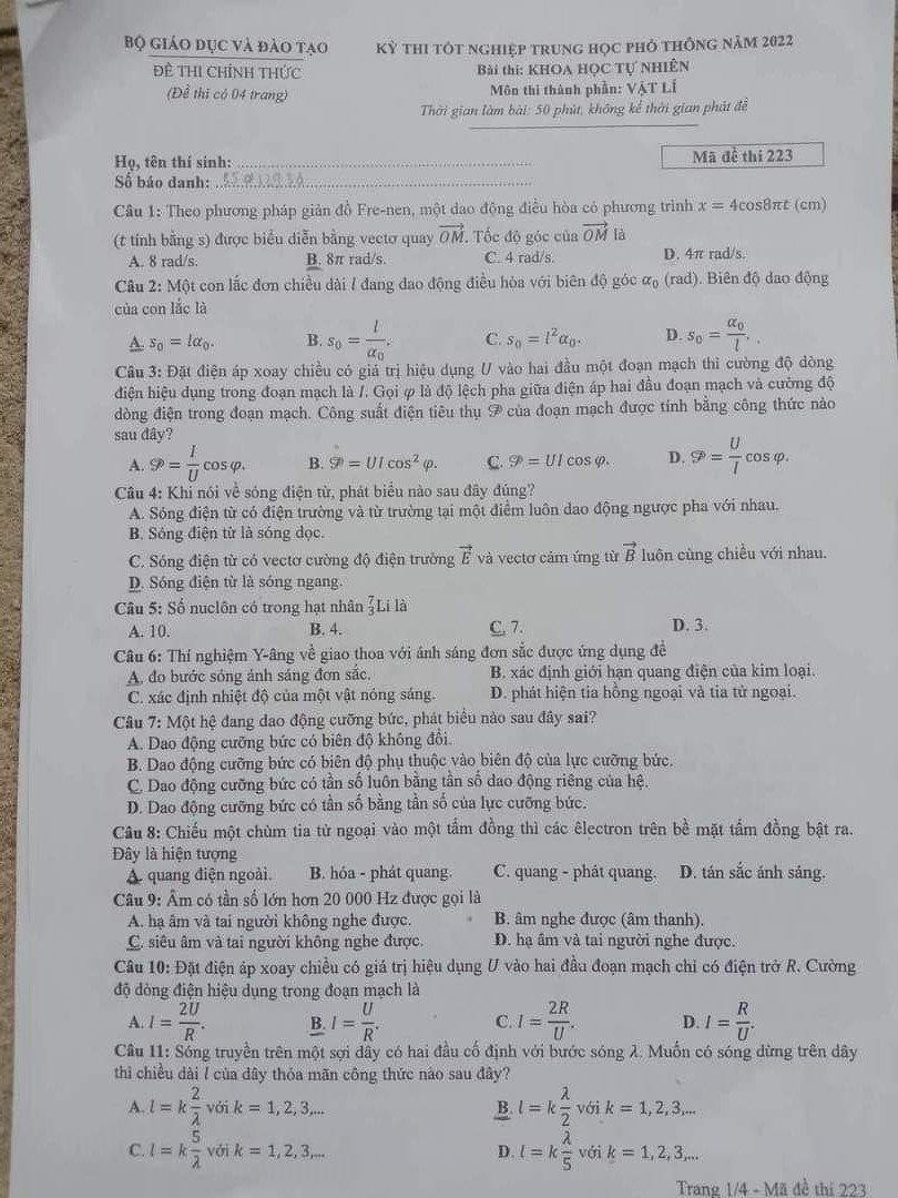 Vật lí - Mã 223 - Tuyensinh247.com