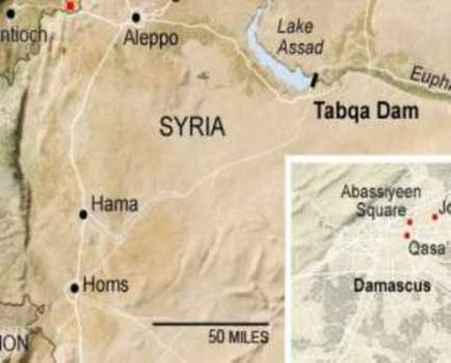 Đập Tabqa, cao 61 m, dài gần 5 km, nằm cách Raqqa, thủ phủ của IS ở Syria, 43 km về phía tây, bị phiến quân chiếm đóng từ năm 2013. Được xây dựng với sự giúp đỡ của Nga vào thập niên 1970, con đập này kiểm soát dòng chảy của sông Euphrates vào đông nam Syria và miền bắc Iraq. Đập đã tạo ra hồ chứa nước Assad lớn nhất Syria với độ dài khoảng 80 km.