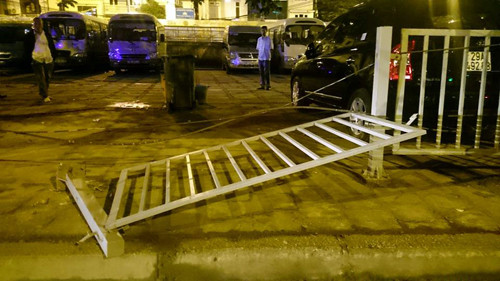 Khoảng 19h tối 24/11, nam nhân viên trông xe bên đường Trần Quang Khải, quận Hoàn Kiếm, lái chiếc Mercedes định lùi vào bãi, tuy nhiên đã đạp nhầm chân ga khiến xe húc đổ vài mét hàng rào bằng sắt và lao từ vỉa hè ra đường. Cú lao mạnh khiến taxi 4 chỗ chạy hướng Trần Nhật Duật không kịp tránh và bị đâm quay ngang đường.