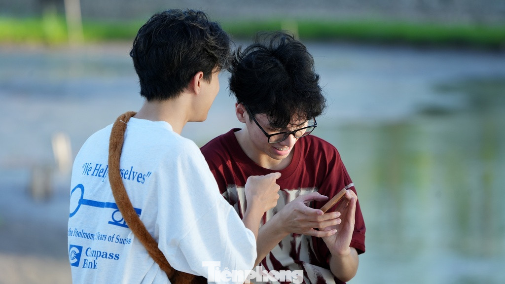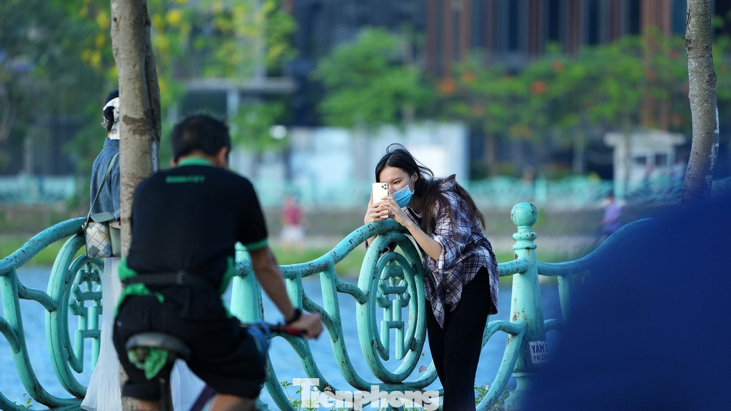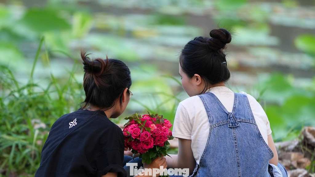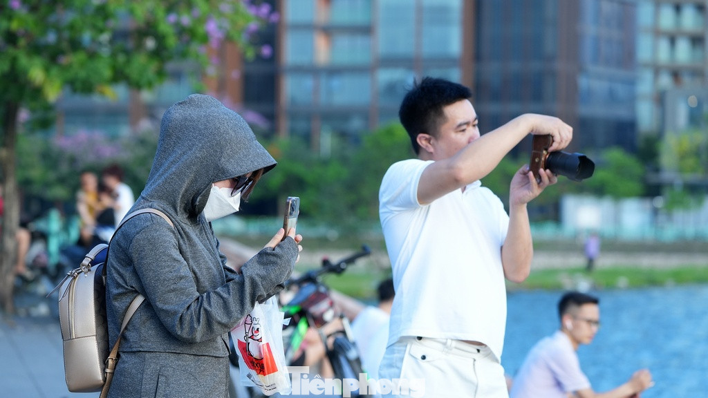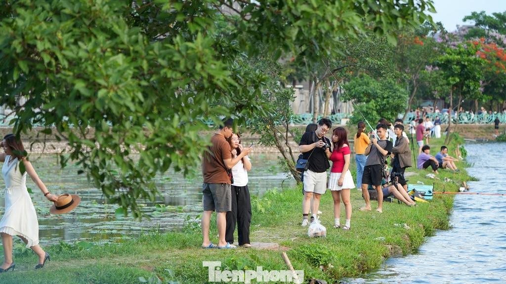 TPO - Trời nắng nóng oi bức, nhiều bạn trẻ đổ về khu vực ven Hồ Tây (quận Tây Hồ, TP Hà Nội) để chụp ảnh check-in cảnh hoàng hôn bên đầm sen.