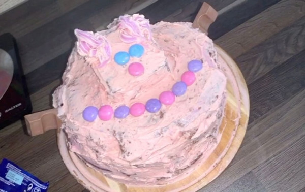 Chiếc bánh đã được gửi đến đúng ngày, nhưng trông hình thù không đúng như mong đợi.