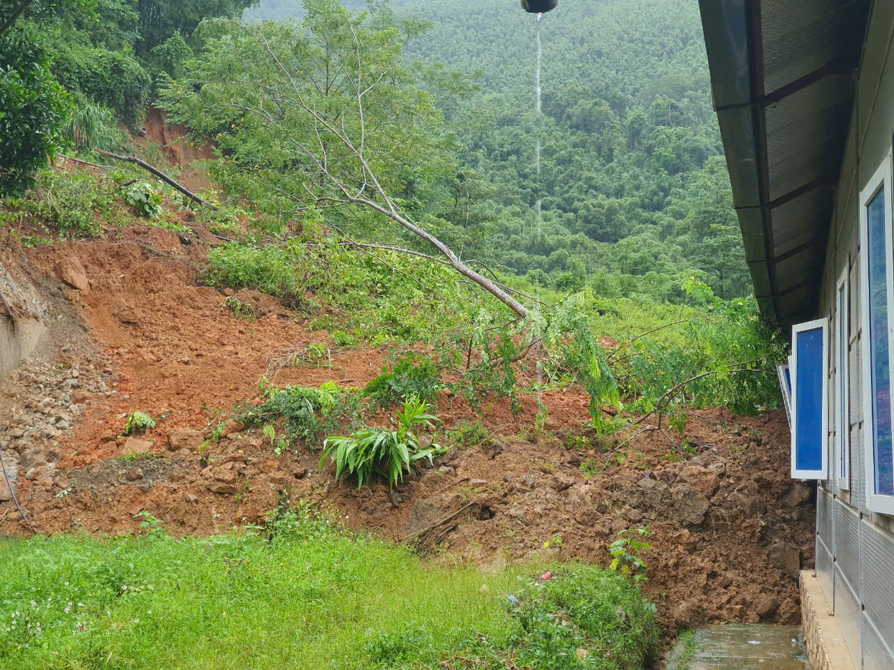 Nguyên nhân tình trạng sạt lở trên là do mưa lũ kéo dài nhiều ngày qua tại địa phương, làm sạt lở đất đá vào taluy dương khu nhà bán trú của học sinh (15 phòng ký túc xá).
