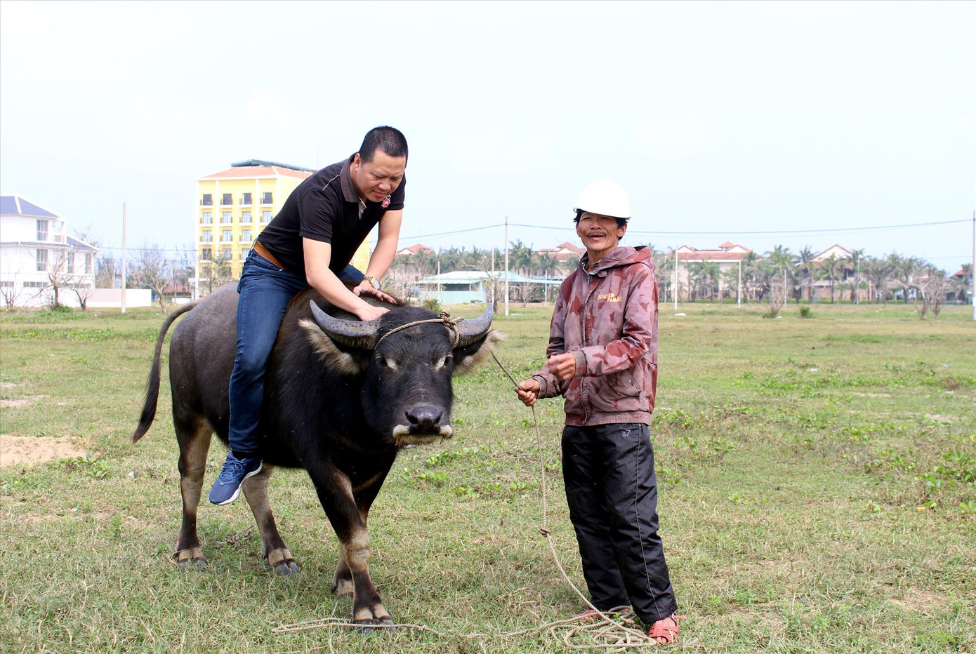 Trên cánh đồng xanh mởn, Rhonda Adams (quốc tịch Mỹ) cùng cô con gái nhỏ đang vuốt ve, tập làm quen với một chú trâu đang nhởn nhơ gặm cỏ. Chỉ ít phút nữa thôi, Rhonda sẽ trải nghiệm tua cưỡi trâu và đi dạo bằng xe trâu mà cô háo hức đã lâu. “Tôi biết về tua này qua các trang web về du lịch và thấy có rất nhiều phản hồi tốt. Vì vậy, khi có cơ hội đến Hội An, tôi đã đăng kí để trải nghiệm”, Rhonda cho hay.