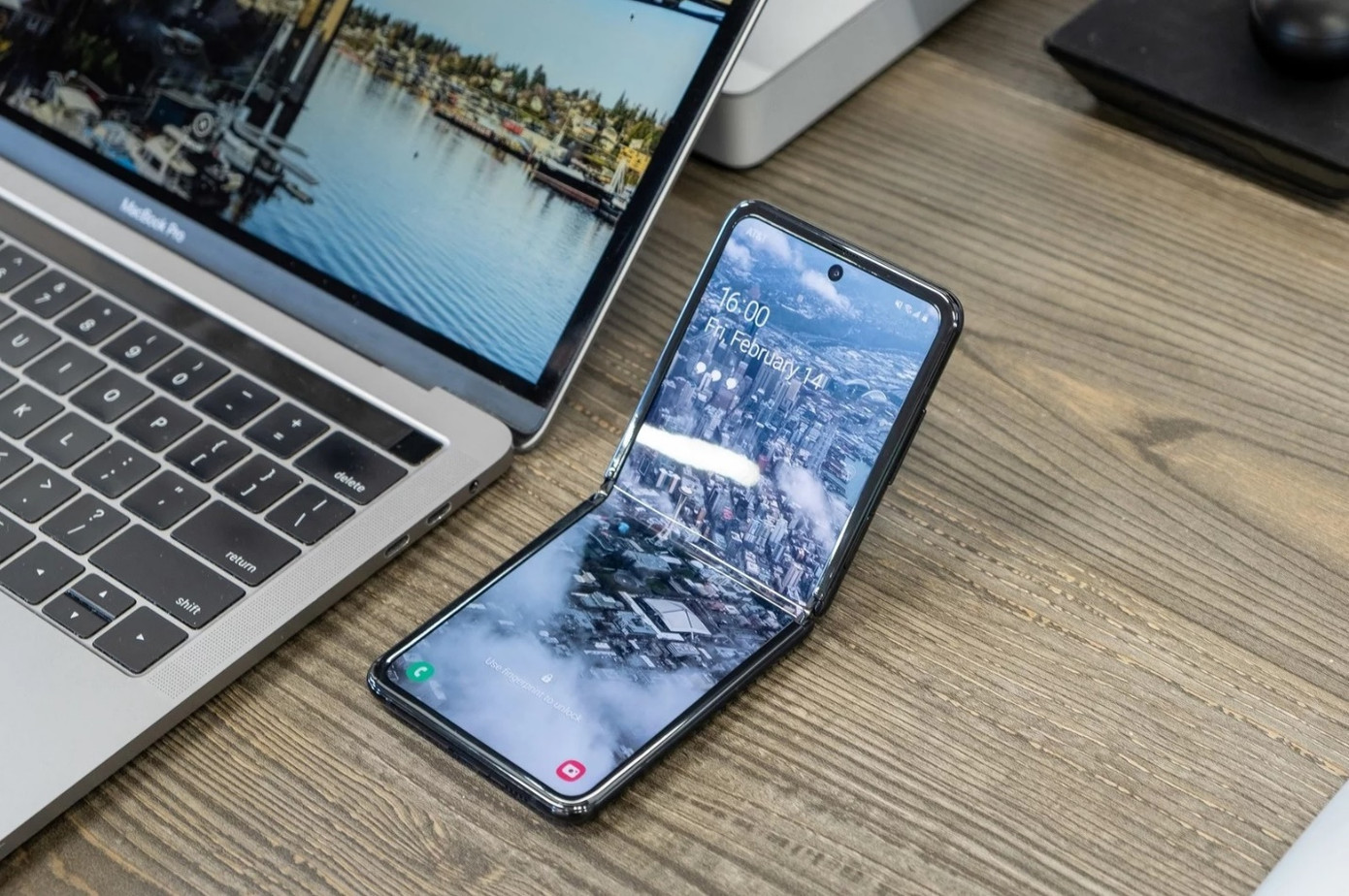 Galaxy Z Flip khi được gập lại rất giống với hộp phấn trang điểm của phái đẹp và nằm gọn trong lòng bàn tay. Khi được mở ra màn hình rộng 6.7 inch với độ phân giải full HD+.