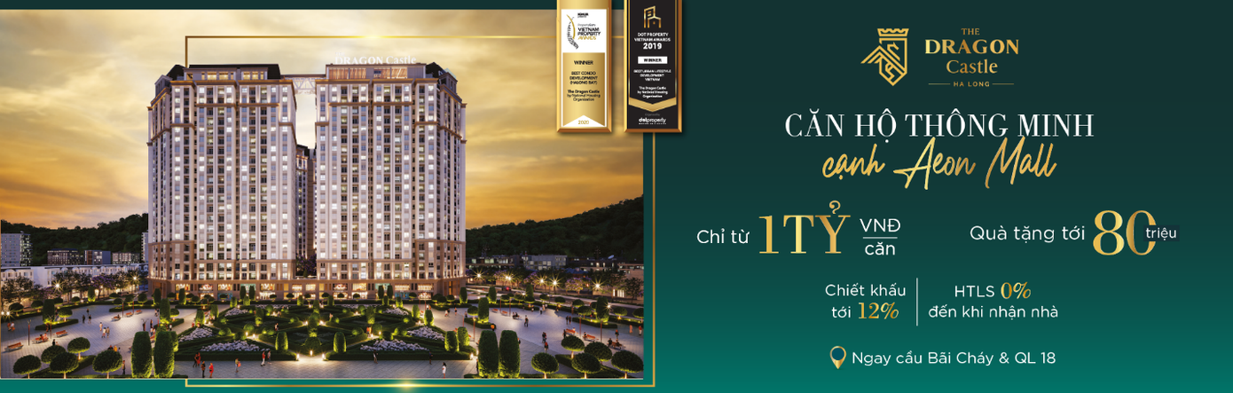Tại trung tâm du lịch Hạ Long, Quảng Ninh, căn hộsở hữu dài lâu Dragon Castle Hạ Long đang là một trong những lựa chọn đầu tư hợp lý với mức giá chỉ từ 1 tỷ/căn, quà tân gia tới 80 triệu đồng kèm TV 50inch trị giá 10 triệu, chiết khấu khủng 12%, hỗ trợ lãi suất 0% đến khi nhận nhà.