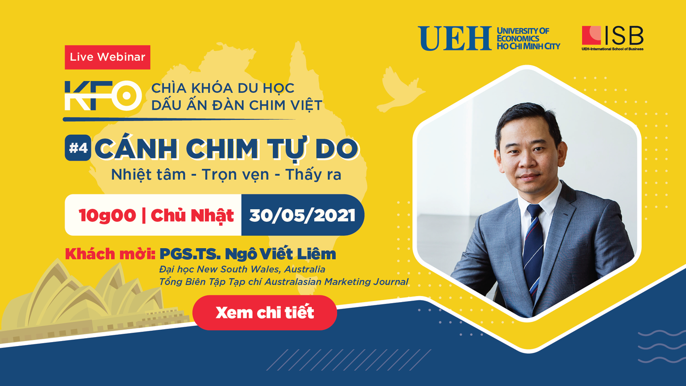Sau thành công của số thứ ba, chuỗi hội thảo “Chìa khóa du học - Dấu ấn Đàn chim Việt" sẽ được tiếp nối với chủ đề “Cánh chim tự do" vào lúc 10h00, ngày 30/05/2021 với sự tham gia của khách mời, diễn giả Phó Giáo sư - Tiến sĩ Ngô Viết Liêm.