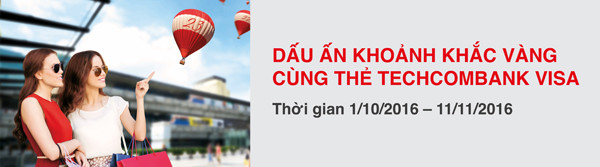 Tiếp nối chương trình 0 đồng E-bank cho các giao dịch trực tuyến, và chương trình 23 năm khát khao mang đến dấu ấn khác biệt, chương trình “Dấu ấn khoảnh khắc vàng” là quà tặng ý nghĩa, tăng thêm niềm vui cho khách hàng nhân dịp Techcombank kỷ niệm 23 năm thành lập ngân hàng.