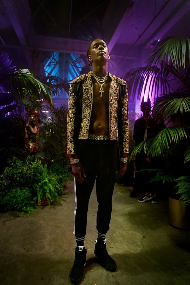 Họa tiết Baroque đang dậy sóng trên các sàn diễn đương đại. Trang phục họa tiết Baroque vẫn cực kỳ cá tính khi Rapper 21 Savage kết hợp với đôi giày Crazy cực chất