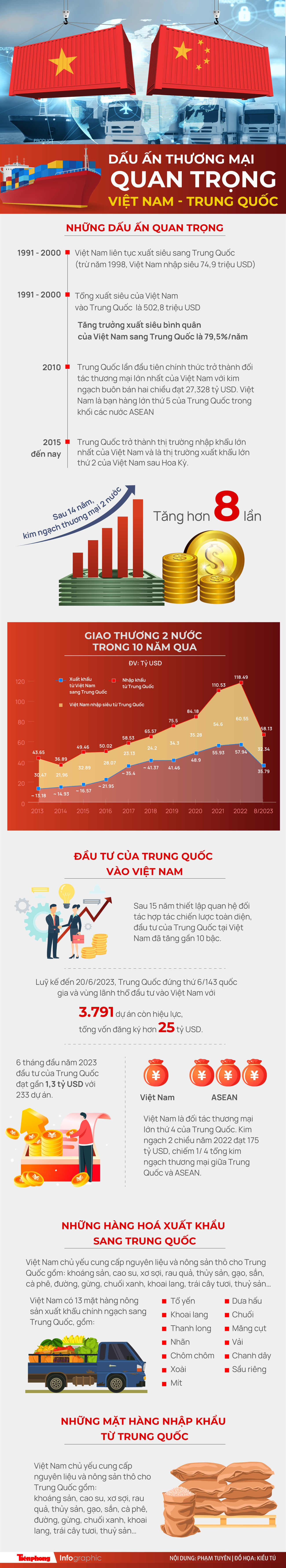 TPO - Việt Nam nhập siêu từ Trung Quốc hàng chục tỷ USD/năm với các nguyên phụ liệu quan trọng cho sản xuất như máy tính, dệt may, da giày, linh kiện máy móc, linh kiện điện tử, hoá chất… Trong khi nông sản, thủy sản Việt Nam xuất khẩu nhiều nhất sang Trung Quốc.