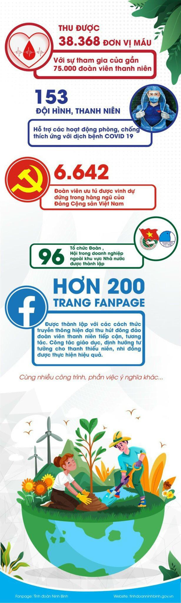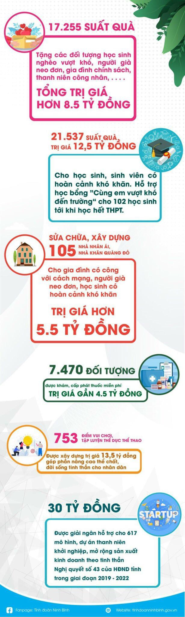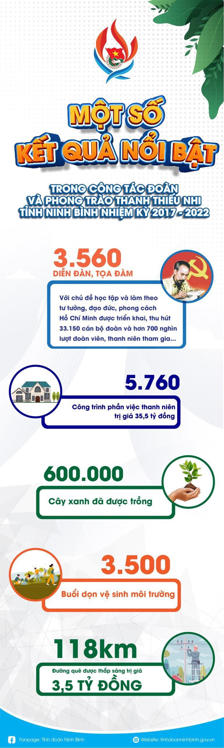 Cùng nhìn lại dấu ấn công tác Đoàn và phong trào thanh thiếu nhi tỉnh Ninh Bình trong nhiệm kỳ 2017 - 2022 qua những con số về kết quả các công trình, phần việc.