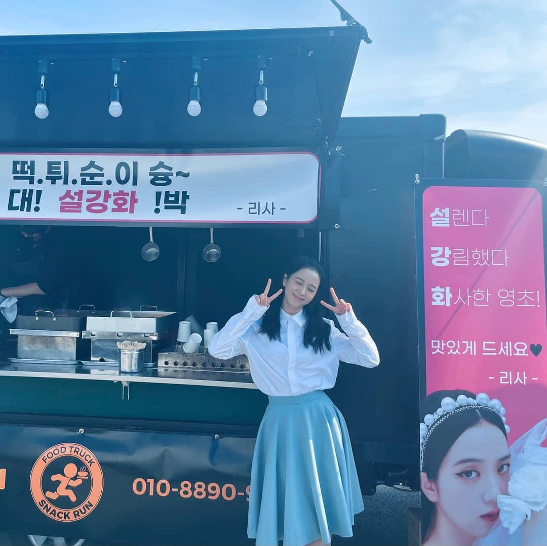 Trong phim Snowdrop, Jisoo đóng vai cô gái sống ở thập niên 80s nên trang phục đậm màu sắc cổ điển. Combo sơ mi trắng kín cổng cao tường và chân váy xòe giúp Jisoo nhìn cực kỳ ngọt ngào.