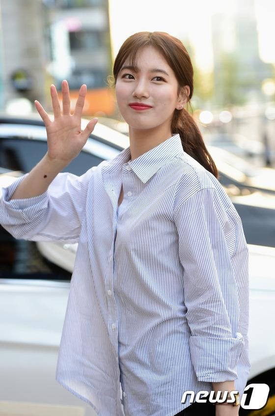 Áo sơ mi dáng rộng, tóc tai buộc rối nhưng Suzy vẫn xinh đẹp rực rỡ nhờ thần thái tươi tắn thân thiện của mình.