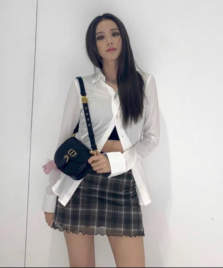 Ngay sau đó, Jisoo lại đầy phá cách khi diện sơ mi trắng với chân váy ôm. Jisoo cực táo bạo khi không cài hết hàng nút dưới cùng, khoe khéo eo thon.