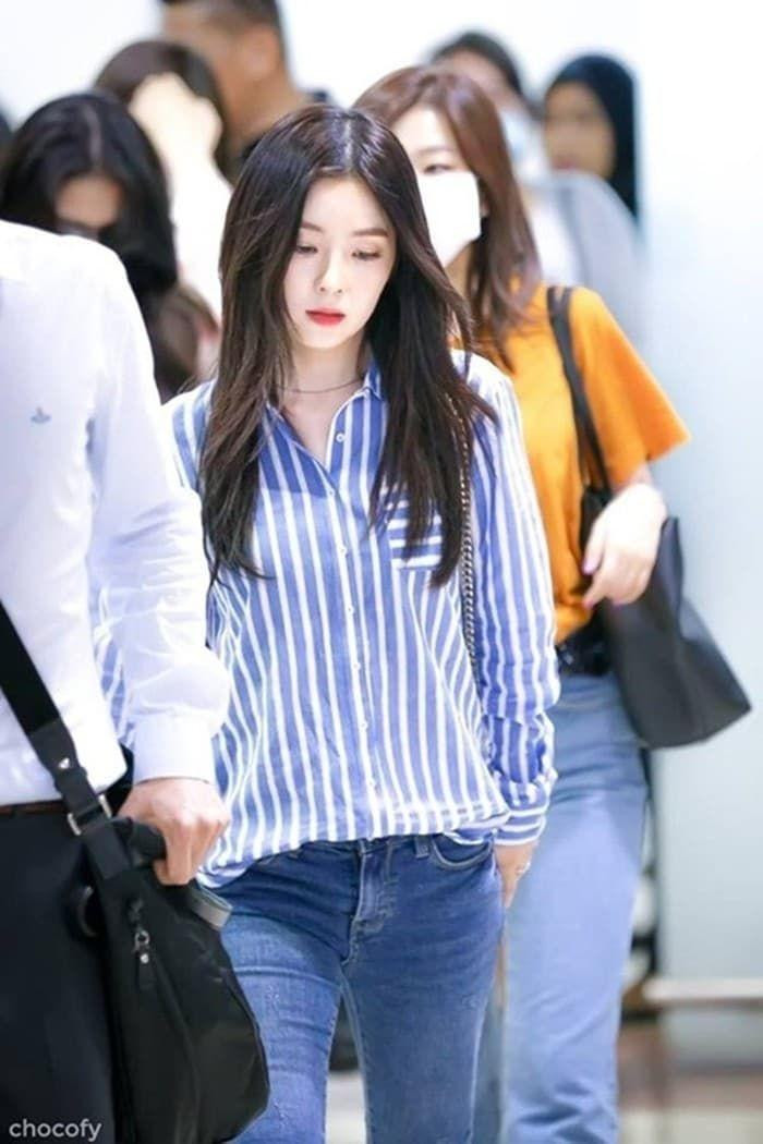 Trang phục đời thường này của Irene còn được khen đẹp hơn nhiều đồ diễn của nhóm Red Velvet. Irene khéo léo sơ vin giúp cho vóc dáng cô nhìn gọn gàng cao ráo hơn hẳn.