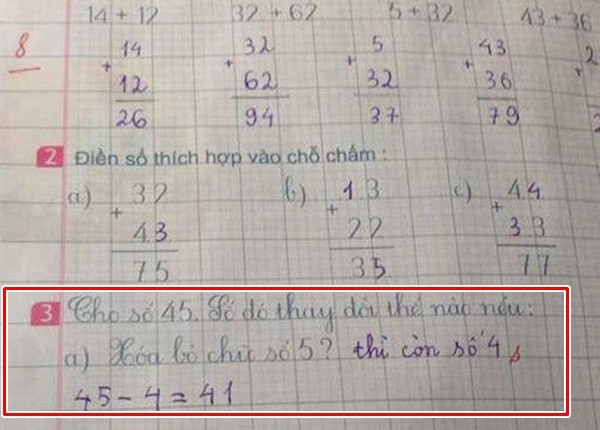 Nếu số 45 xóa đi số 5, số còn lại không phải là 4 thì là số mấy? (Ảnh: Internet)