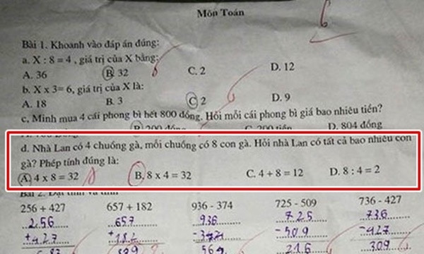 Phải chăng ý của cô giáo là 8x4=32 mới đúng, còn 4x8=32 là sai bét ư? (Ảnh: Internet)