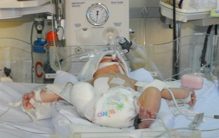 Hiện bệnh nhi đang được hỗ trợ thở máy, hồi sức tíchcực nhưng tiên lượng khá dè dặt. Ngày 26/10, TS.BS Nguyễn Thanh Hùng, Giám đốc bệnh viện cho hay, một ngày sau cuộc phẫuthuật đoạn chi tình trạng sức khỏe của cháu bé vẫn chưa mấy cải thiện chúng tôiđang theo dõi sát diễn tiến sức khỏe của bé nhưng tim của bệnh nhi có dấu hiệubị dập. Bệnh viện vẫn chưa thể nói trước được điều gì song chúng tôi sẽ nỗ lực bằngchính trách nhiệm và lương tâm của mình để cứu cháu.
