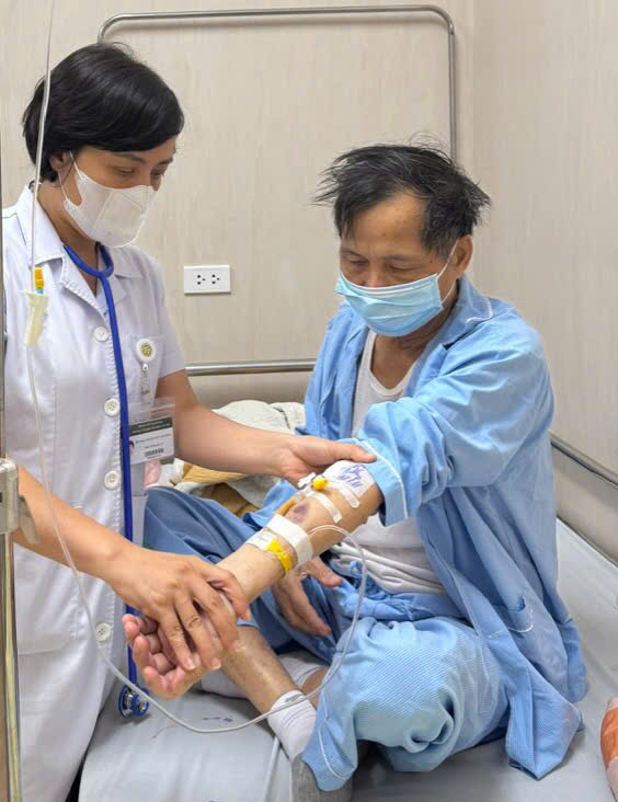 Bác sĩ Trung tâm Huyết học và truyền máu thăm khám cho bệnh nhân xuất huyết giảm tiểu cầu miễn dịch đang điều trị tại Trung tâm. Ảnh: Bệnh viện Bạch Mai