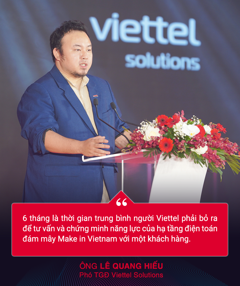 Nói về việc tư vấn và thực hiện chuyển đổi số cho các khách hàng lớn như Văn phòng Chính phủ, các địa phương hay doanh nghiệp như Vietnam Airlines, Ngân hàng Quân đội (MB), ông Lê Quang Hiếu, Phó Tổng giám đốc (TGĐ) Tổng công ty Giải pháp Doanh nghiệp Viettel (Viettel Solutions) cho biết: đó là một hành trình. 6 tháng là thời gian trung bình người Viettel phải bỏ ra để tư vấn và chứng minh năng lực của hạ tầng điện toán đám mây Make in Vietnam với một khách hàng