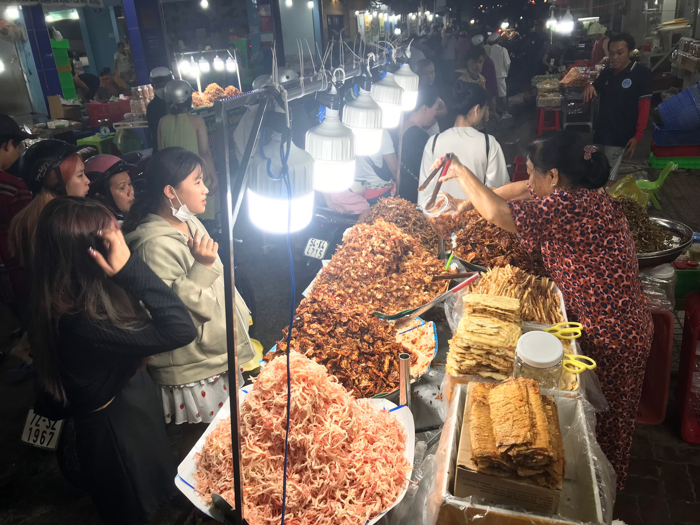 | Thời điểm lý tưởng để các bạn trẻ tham quan hải sản Xóm Lưới và ghé quán thưởng thức các món hải sản hấp dẫn là tầm khoảng 18h - 19h. Lúc này, du khách đến chợ đông đúc, tấp nập mang đến không khí nhộn nhịp. Hải sản mới được đưa đến chợ nên cũng tươi ngon hơn. |
