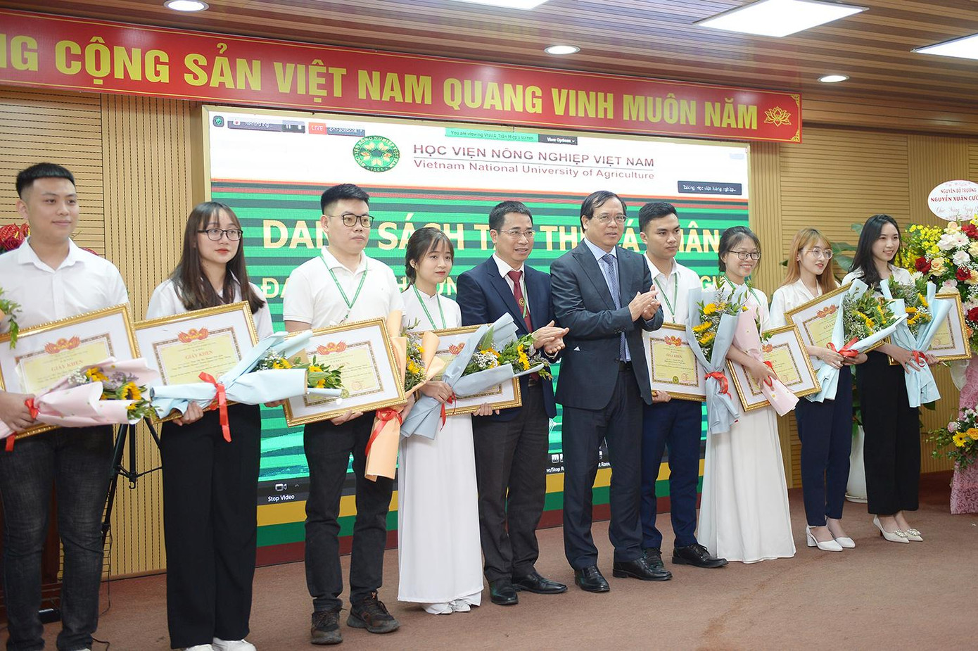 | Những sinh viên ưu tú được vinh danh khen thưởng có thành tích trong công bố khoa tại các tạp chí quốc tế thuộc danh mục ISI/Scopus; đấu thầu thành công các đề tài cấp Bộ và tương đương trở lên và tiến bộ kỹ thuật, giống cây trồng được công nhận cấp quốc gia. |