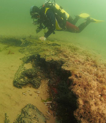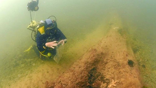 Dawn Watson, một thợ lặn của tổ chức Sea Search, tình cờ bắt gặp một dải sóng lớn cuốn theo nhiều thứ tối màu. Cô cho rằng đây là những gì còn sót lại có thể là của một rừng sồi bị san phẳng.