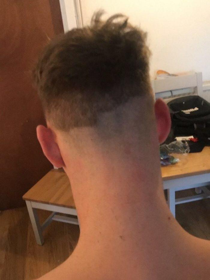 Bước 1: Lấy tông đơ, kéo. Bước 2: Úp cái tô lên đầu rồi cắt theo đường viền. Bước 3: Hello mọi người thấy mũi tên đẹp không?