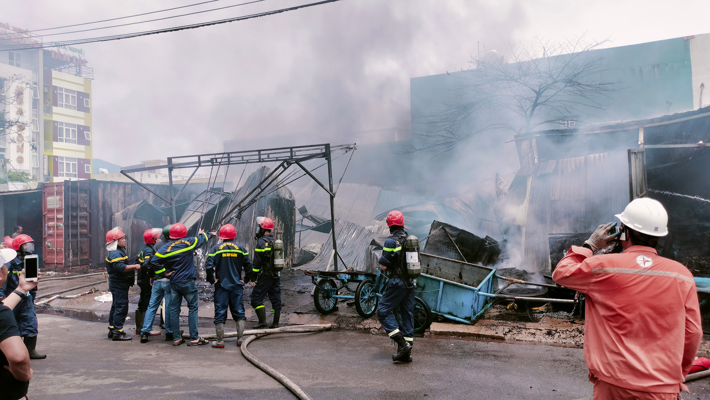 Dãy cửa hàng, ki-ốt bị cháy cung cấp vật tư, nguyên liệu cho tàu cá neo đậu trên âu thuyền và phục vụ buôn bán ở cảng cá Thọ Quang với nhiều vật liệu dễ cháy.