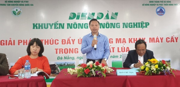 Ông Nguyễn Phú Ban, Giám đốc Sở Nông Nghiệp & PTNT Đà Nẵng chia sẻ tại Diễn đàn, Sở sẵn sàng hỗ trợ, tạo cơ chế chính sách để khuyến khích các hợp tác xã, hộ nông dân áp dụng tiến bộ kỹ thuật, thúc đẩy ứng dụng mạ khay, máy cấy trong sản xuất lúa trên địa bàn tỉnh.
