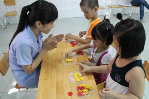 Mỗi trẻ tự kỷ cần được dạy dỗ theo một cách riêng, không giống trẻ bình thường. Tại trường mầm non chuyên biệt Khai Trí (TP HCM), mỗi cô giáo chỉ dạy 3-4 trẻ. Ảnh: Lê Phương.