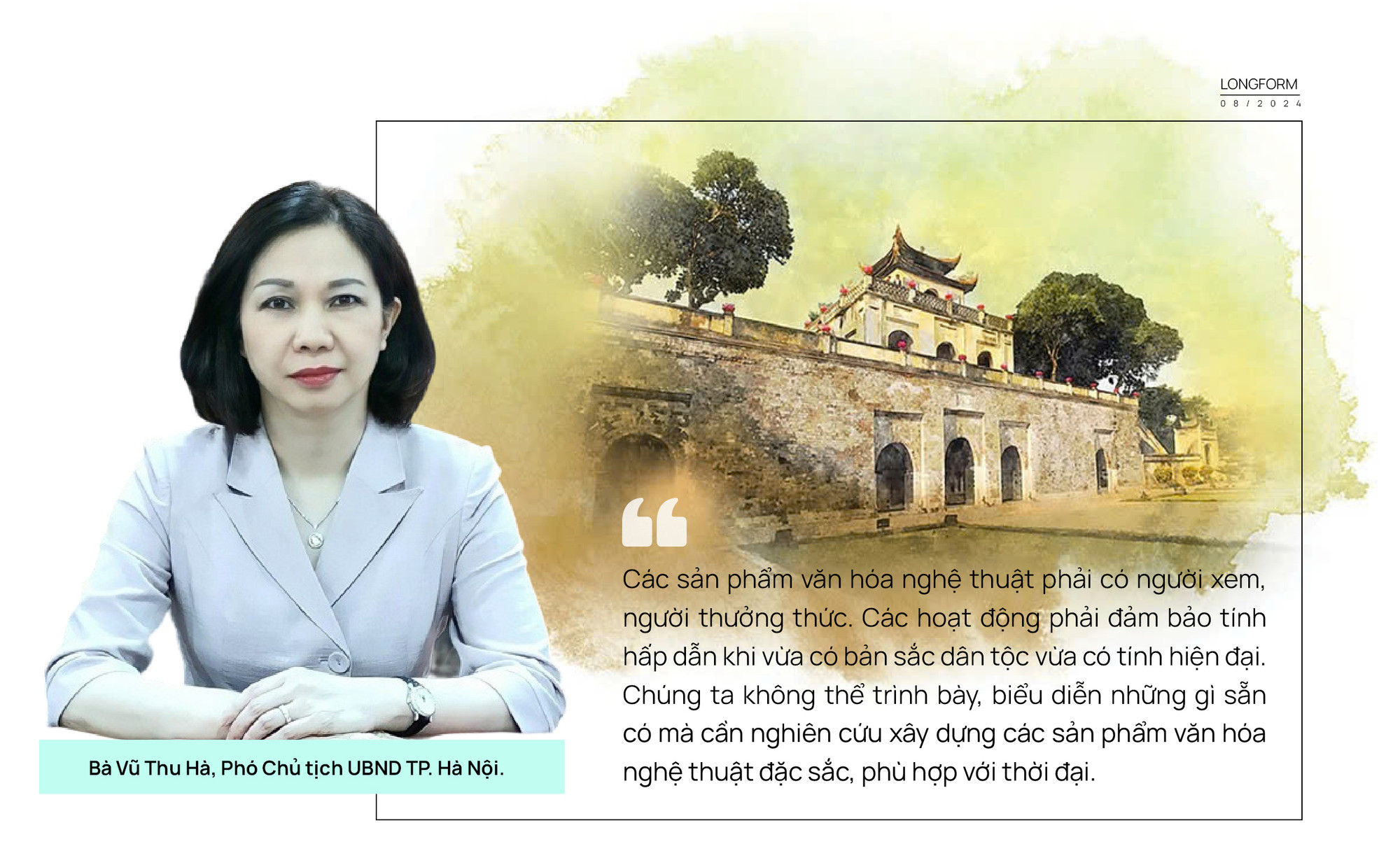 Tại hội nghị triển khai nhiệm vụ ngành văn hóa và thể thao do Sở Văn hóa và Thể thao Hà Nội tổ chức đầu năm 2024, Phó Chủ tịch UBND TP. Hà Nội Vũ Thu Hà nhấn mạnh, mong muốn ngành công nghiệp văn hóa phát triển mạnh mẽ phải có sản phẩm văn hóa chất lượng, thu hút người dân, khách du lịch.
