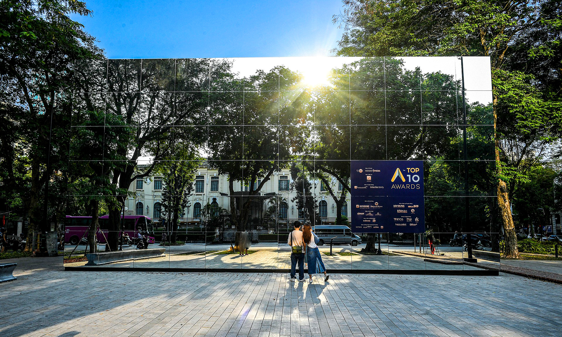 Tháng 5/2023, phòng triển lãm ngoài trời có bốn bề bằng gương lớn, bao quanh đài phun nước của vườn hoa Diên Hồng là thiết kế độc đáo gây chú ý, khoác tấm áo mới cho công trình tồn tại lâu đời ở trung tâm thành phố.