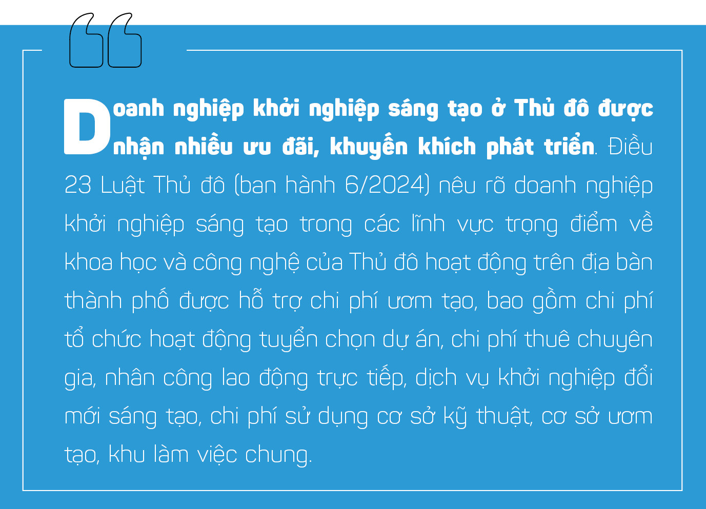 Trong Luật Thủ đô (sửa đổi), Hà Nội đã thiết kế những điều khoản, điều luật (Điều 23) nói rất rõ về phát triển công nghiệp văn hóa và Thành phố Sáng tạo. Các chính sách về phát triển nguồn lực và thương hiệu, cách thức tổ chức, thực hiện cũng được Hà Nội sắp đặt, thể hiện từ Điều 21 đến 42 trong Luật Thủ đô (sửa đổi).