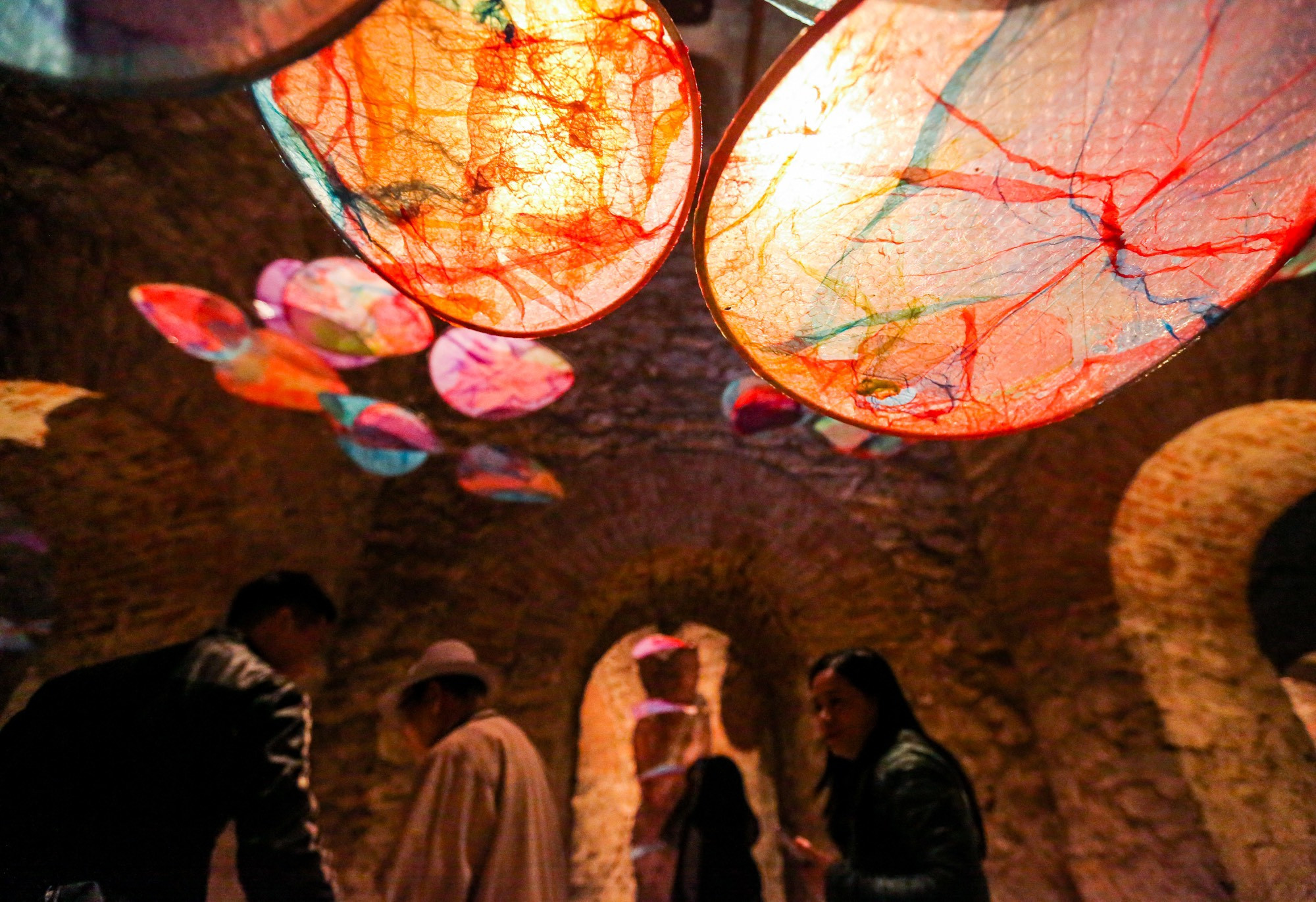 Những tác phẩm nghệ thuật với mảng màu loang lổ được làm từ ni lông tái chế, được sắp xếp sống động và đầy bay bổng. Trong những ngày mở cửa, hàng dài người dân đợi sẵn từ vài tiếng đồng hồ để chiêm ngưỡng công trình kiến trúc vừa quen, vừa lạ.
