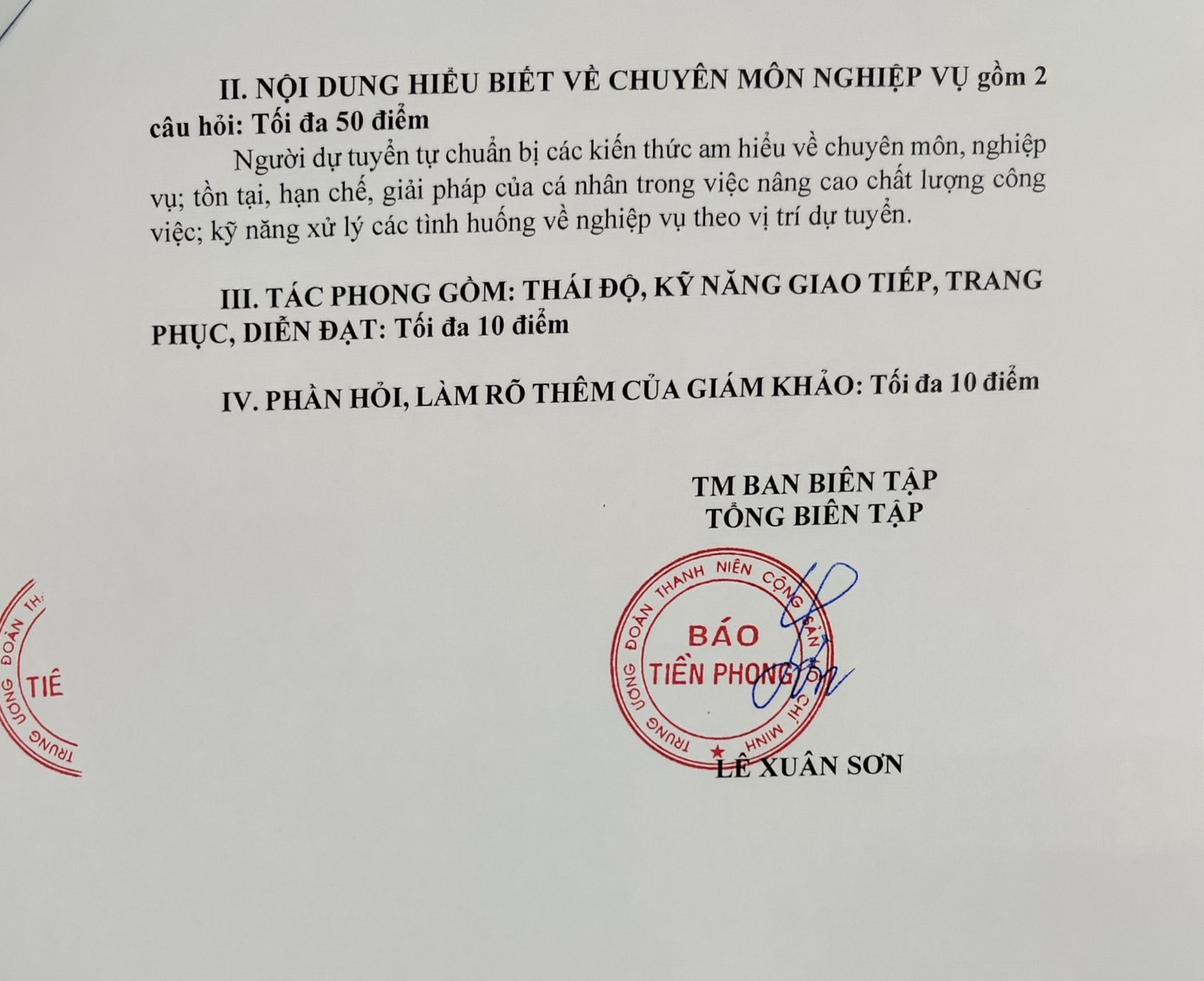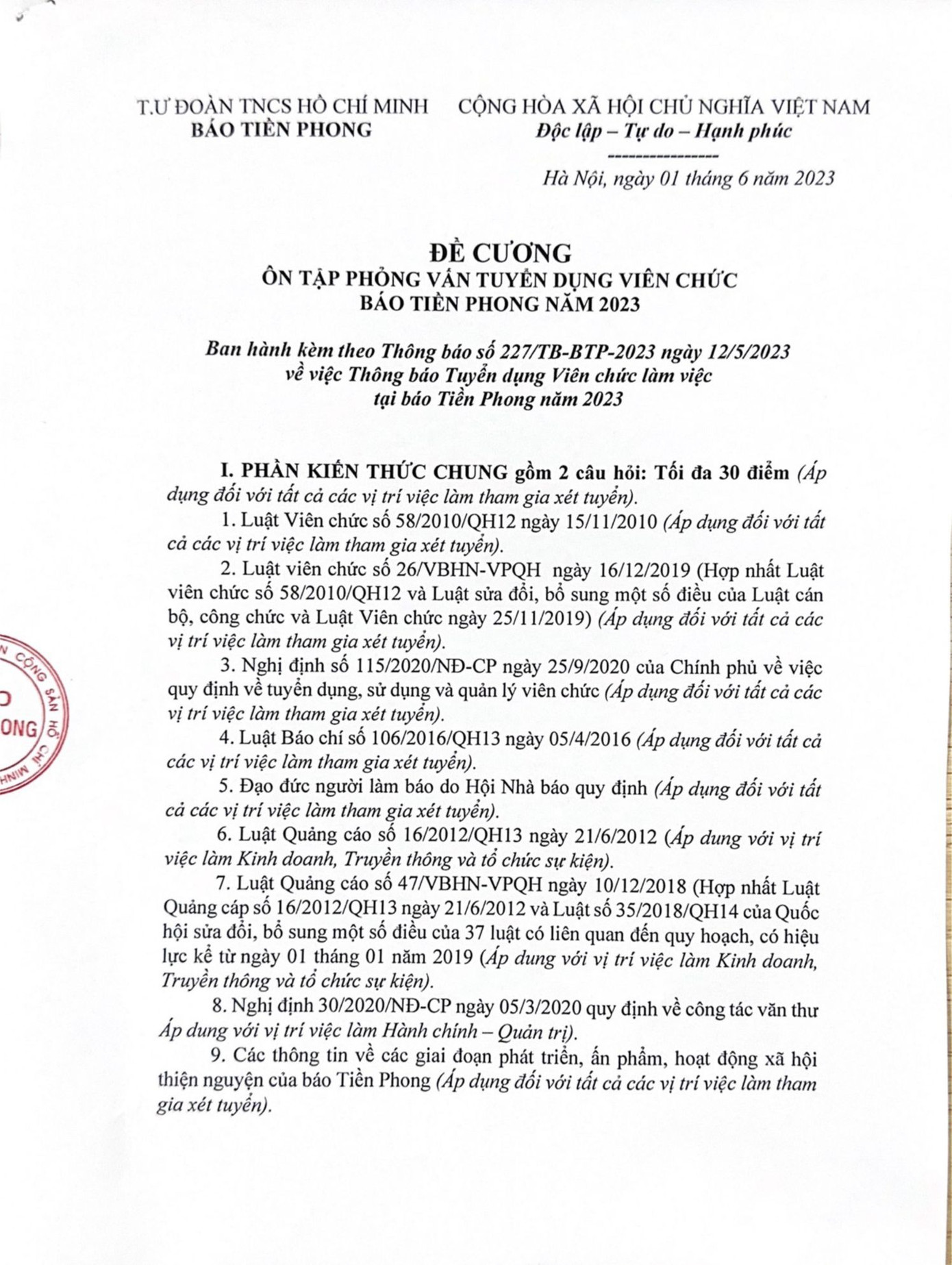 Đề cương được ban hành kèm theo Thông báo số 227/TB-BTP-2023 ngày 12/5/2023, về việc Thông báo Tuyển dụng Viên chức làm việc tại báo Tiền Phong năm 2023.
