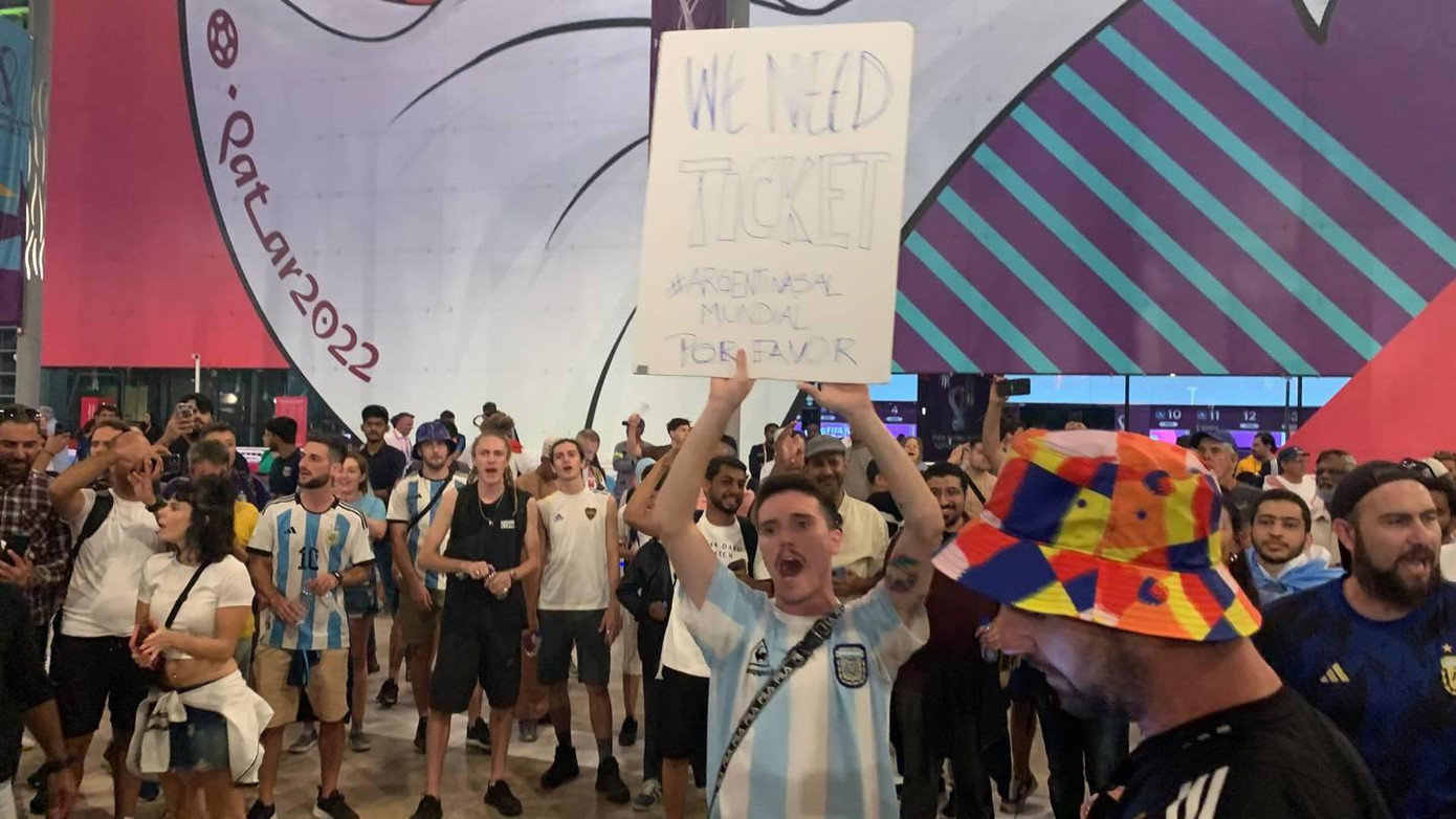 Sau khi không nhận được phản hồi từ AFA, họ lập tức gây khó khăn cho BTC giải. Hàng trăm người đã bao vây quầy vé của sân Lusail, địa điểm tổ chức trận chung kết vào 22h00 hôm nay (18/12).